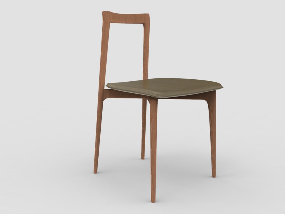 Modern Linea 632 Grey Chair in Green Leather and Wood by Collector Studio