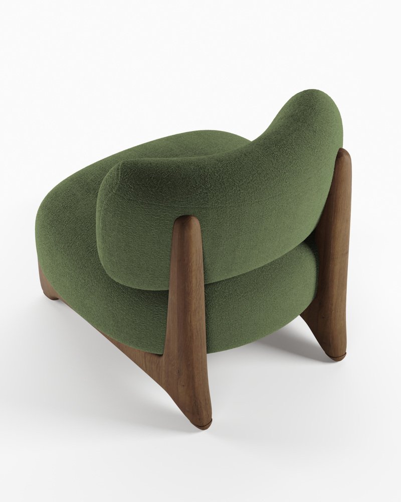 Modern Tobo Armchair in Fabric Boucle Green and Smoked Oak Wood by Collector Studio