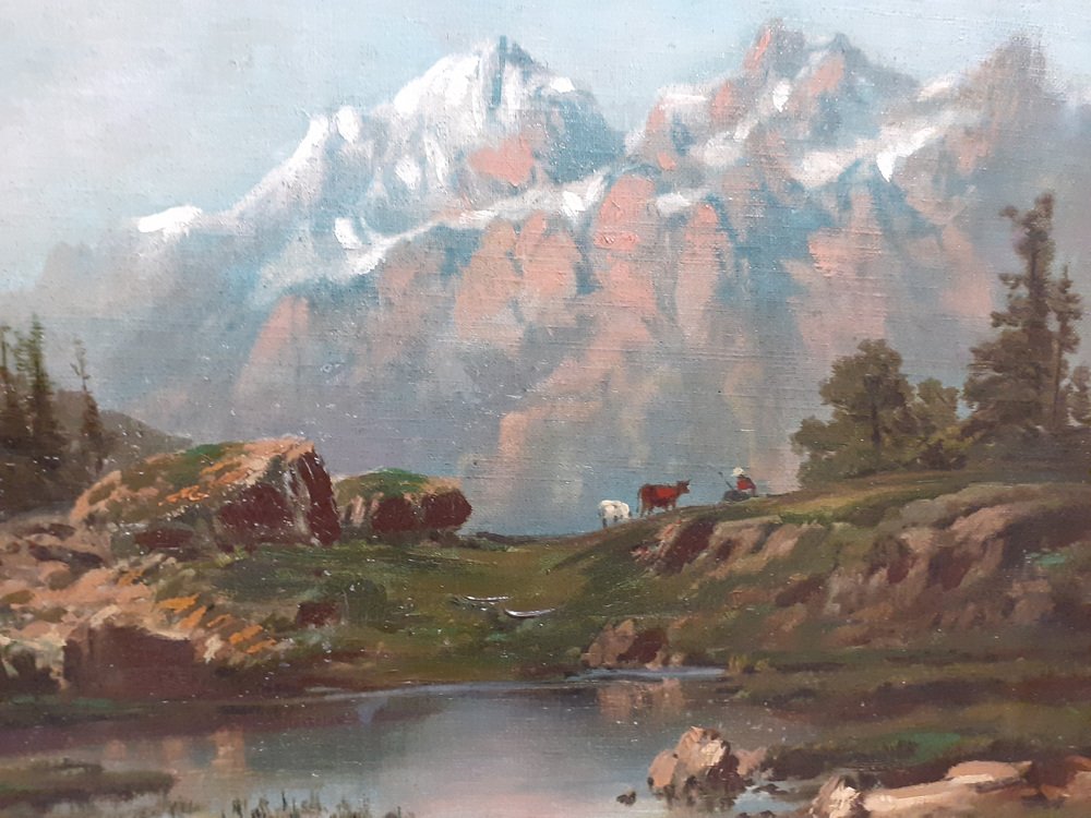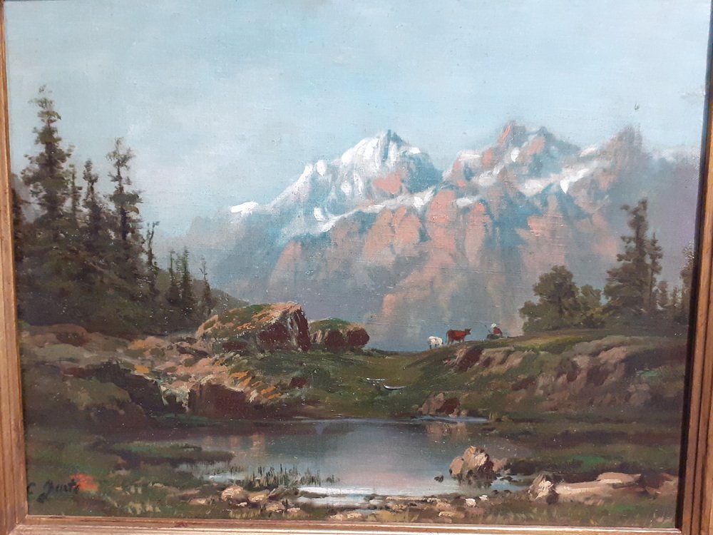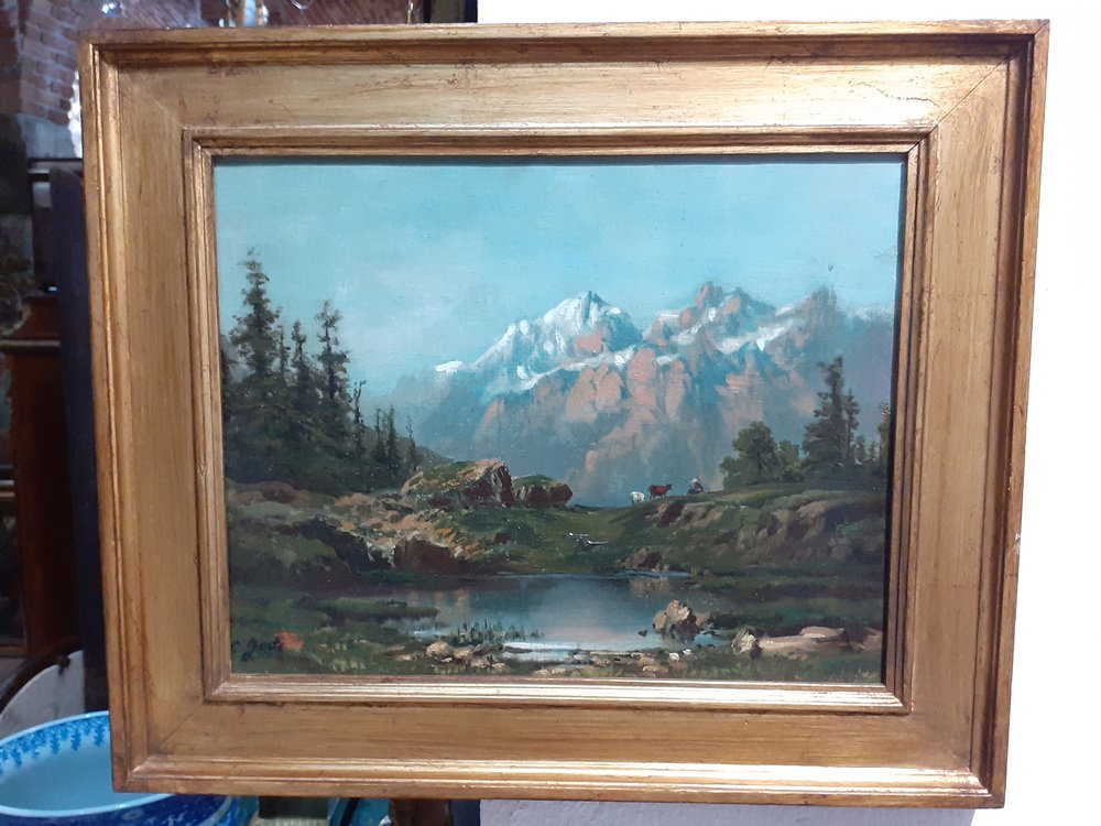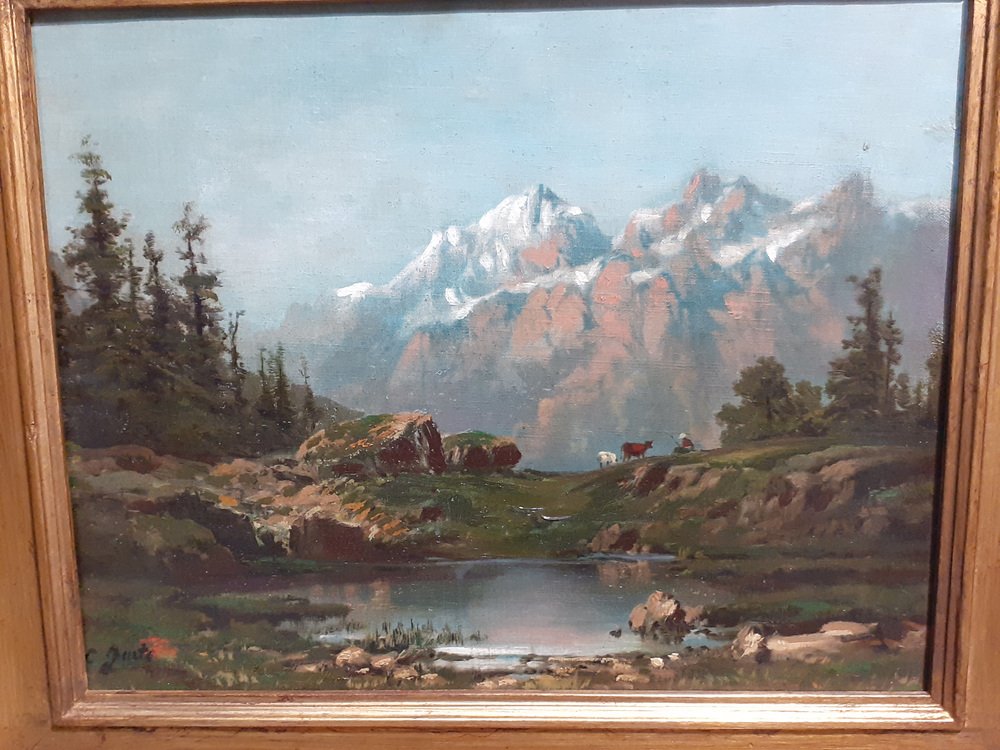 Mountain Landscape, 1890s, Oil on Canvas, Framed