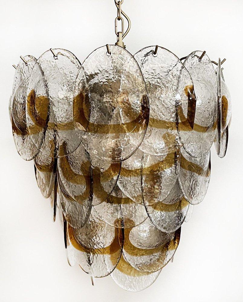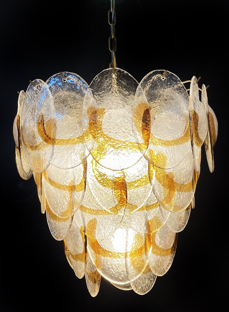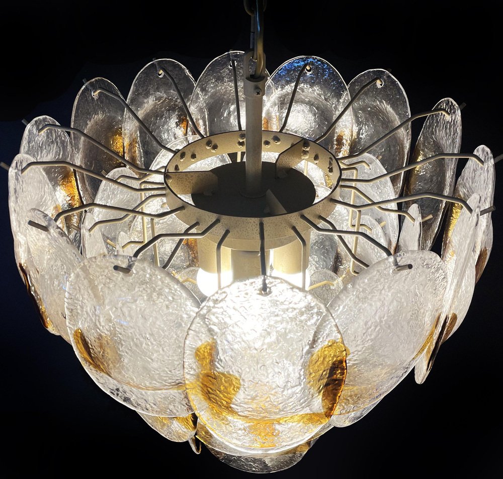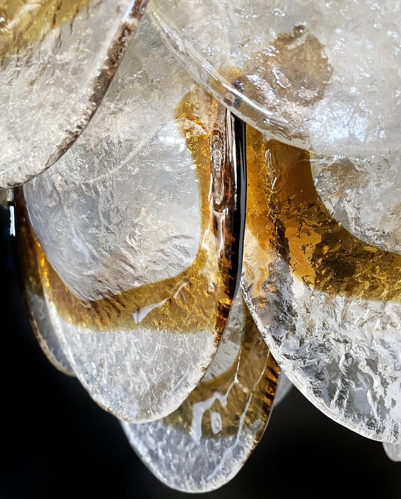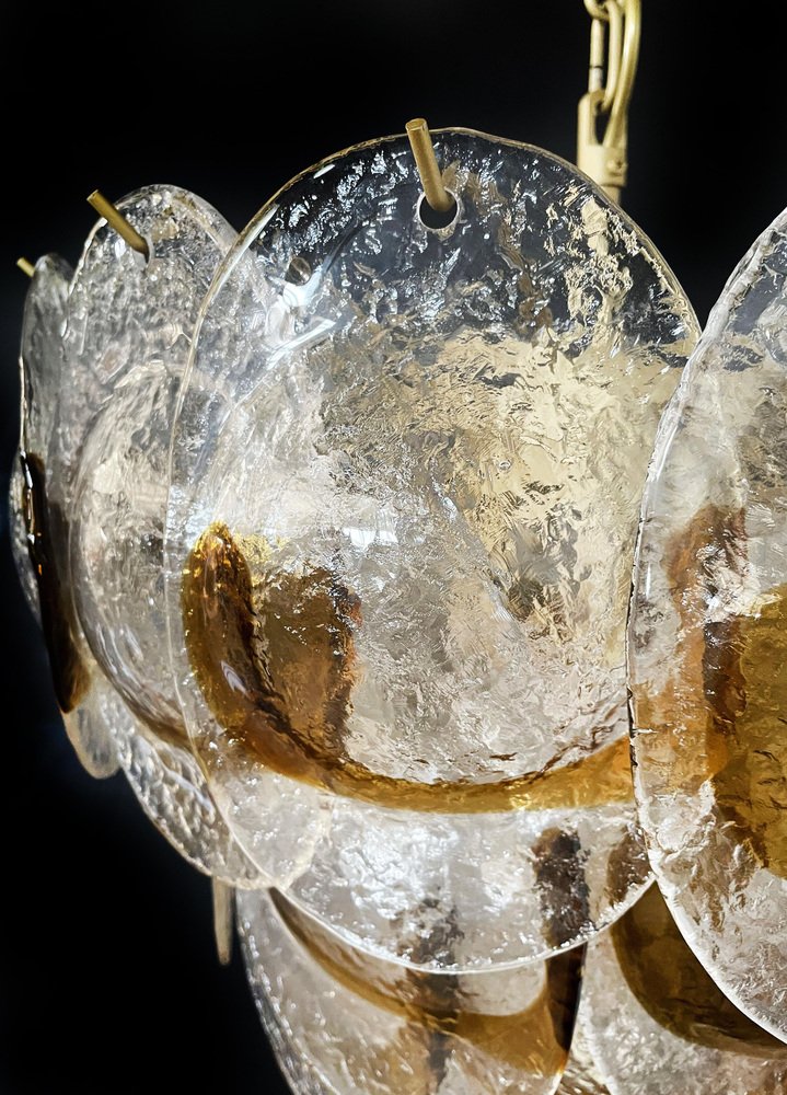 Murano Chandelier with 41 Lattimo Amber Glasses by Mazzega, 1979