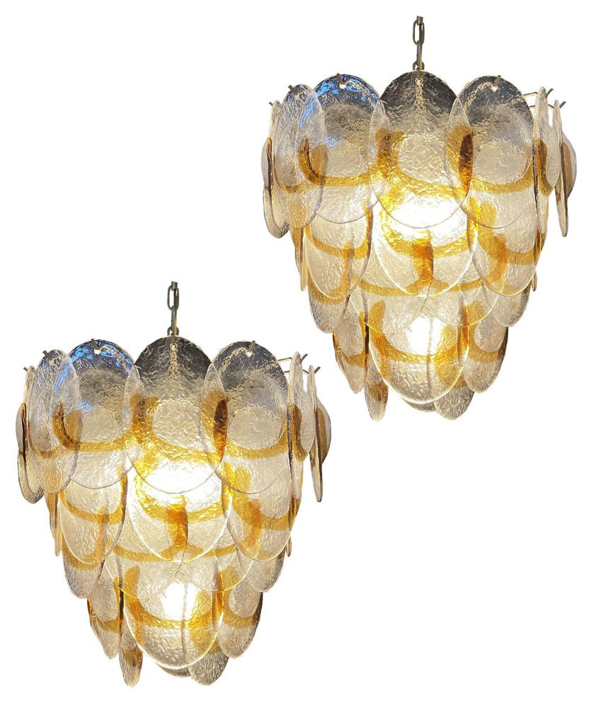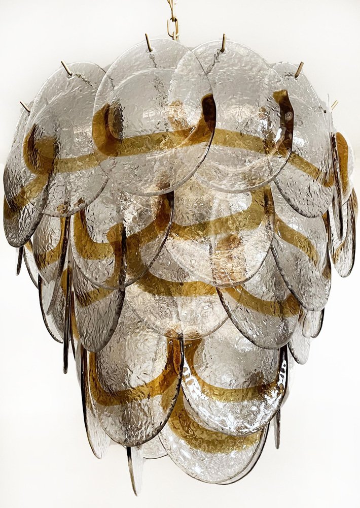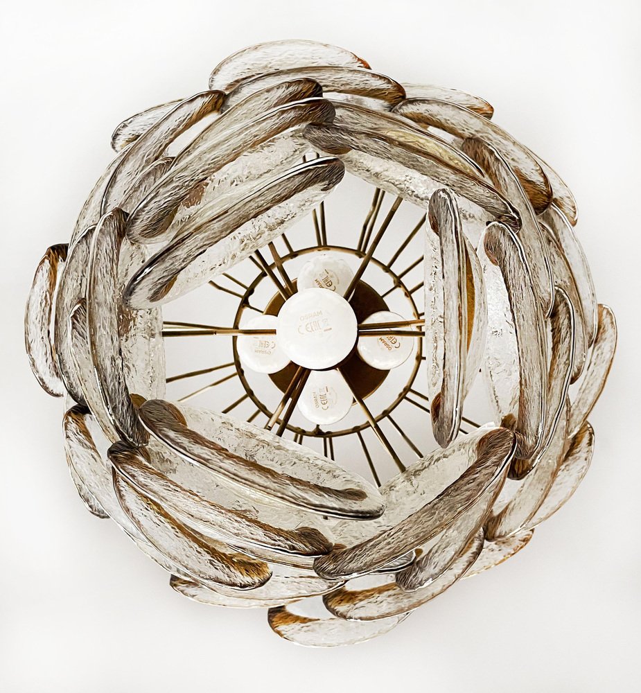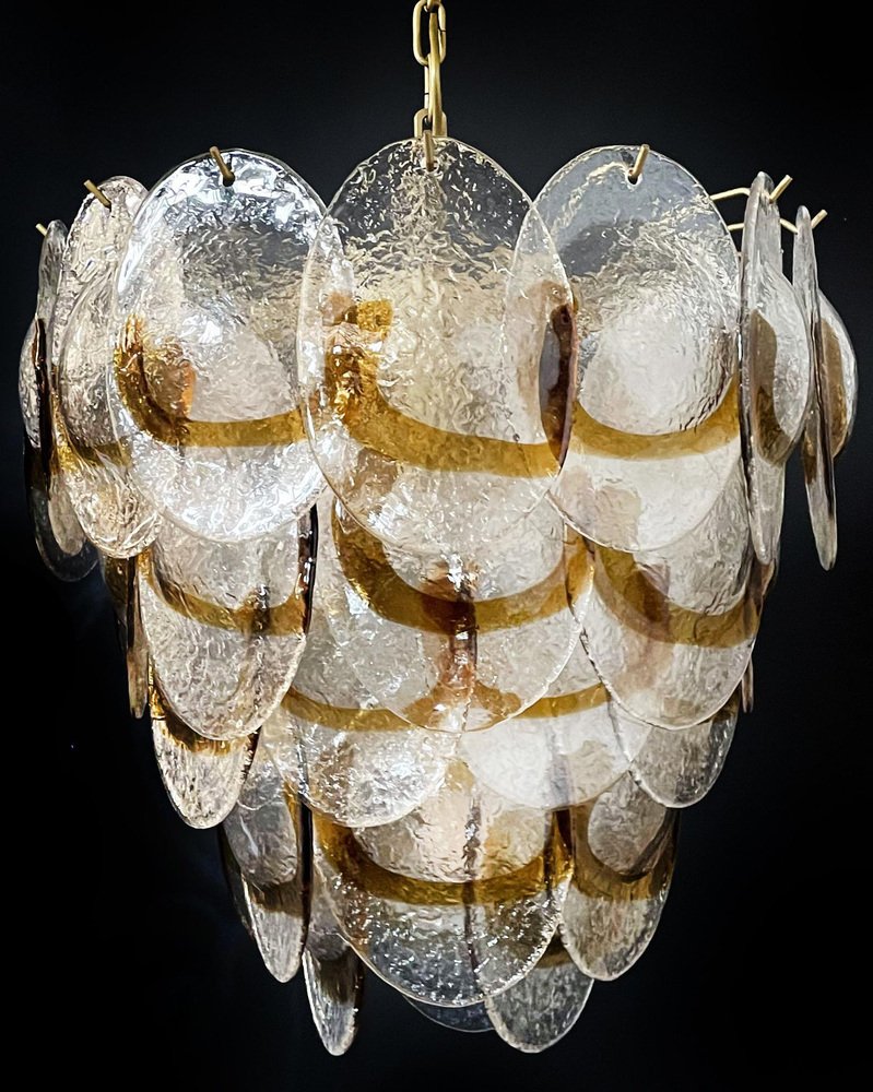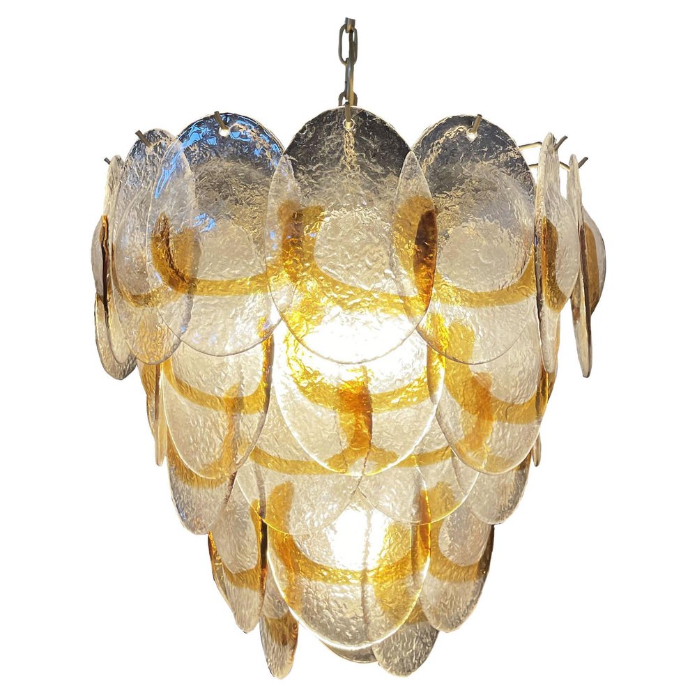 Murano Chandelier with 41 Lattimo Amber Glasses by Mazzega, 1979