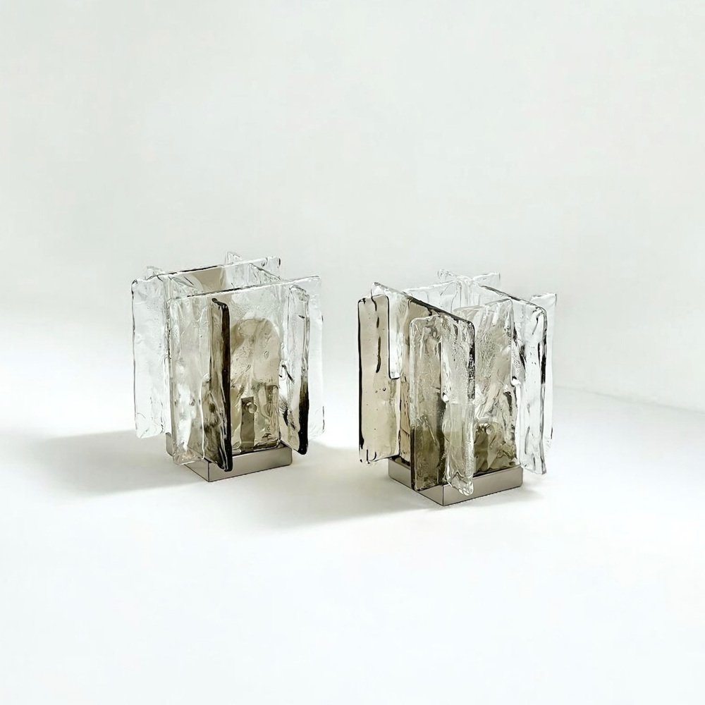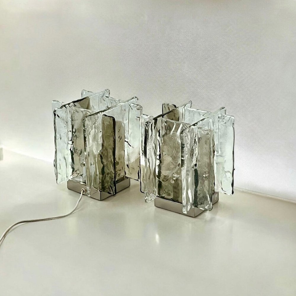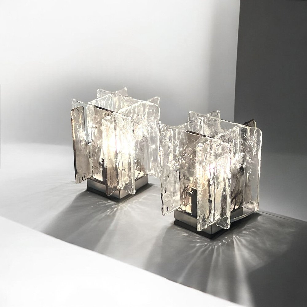 Murano Ice Glass Lamps Model LT361 by Carlo Nason for Mazzega, 1970s, Set of 2
