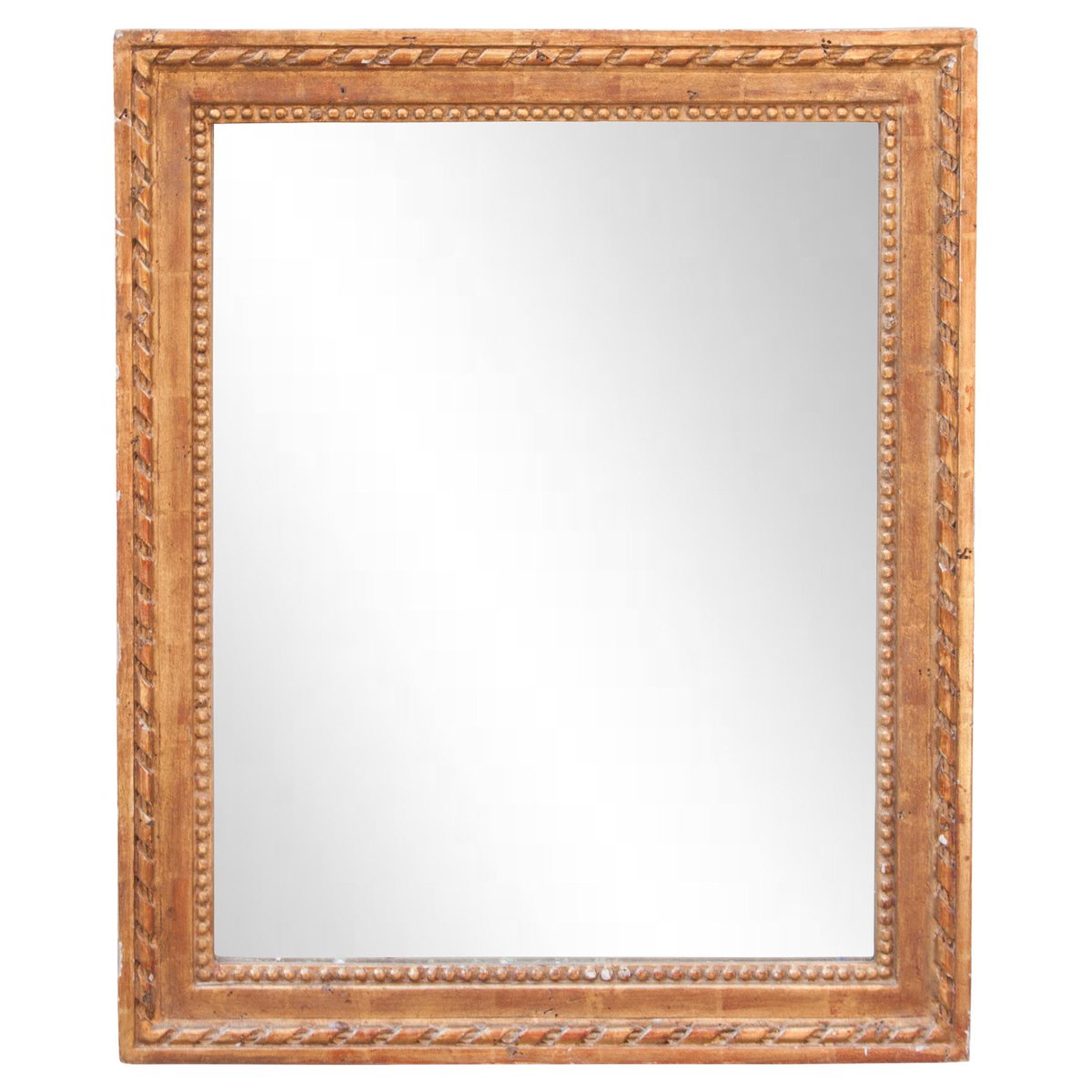 Neoclassical Empire Rectangular Gold Hand Carved Wooden Mirror, 1970s