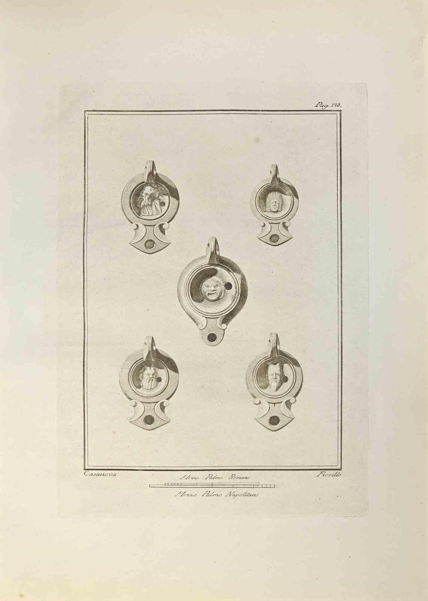 Nicola Fiorillo, Oil Lamp with Pan and Silvanus Roman, Etching, 18th Century
