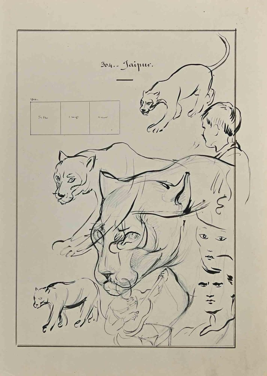 Norbert Meyre, Playing, Drawing in Ink, Early 20th Century