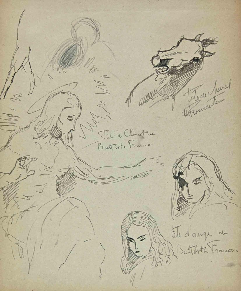 Norbert Meyre, The Sketches and Portrait, Original Drawing, Mid-20th Century