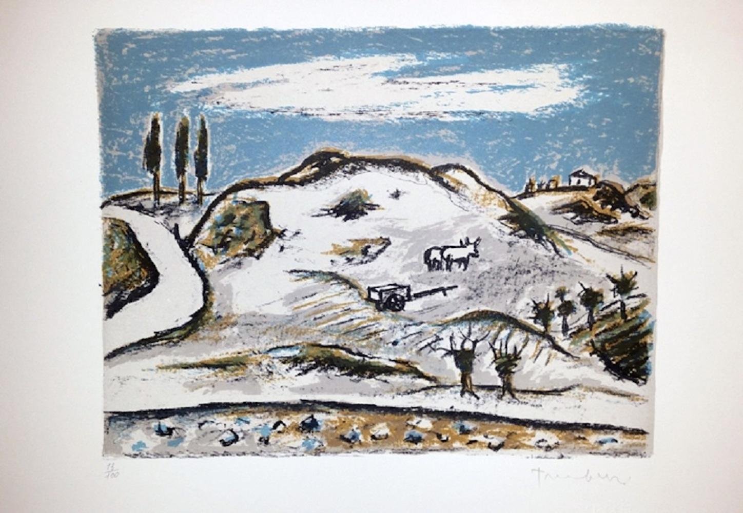 Orfeo Tamburi, I Bovi Tra Le Crete, Original Lithograph, 1970s