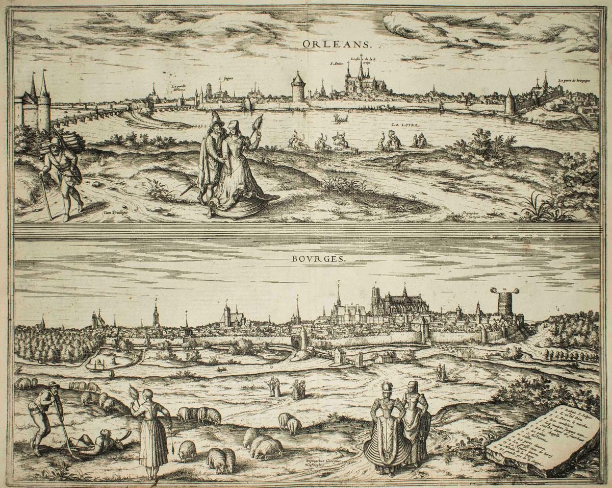 Orleans and Bourges, Map from ''Civitates Orbis Terrarum''-by F. Hogenberg - 1575 1575