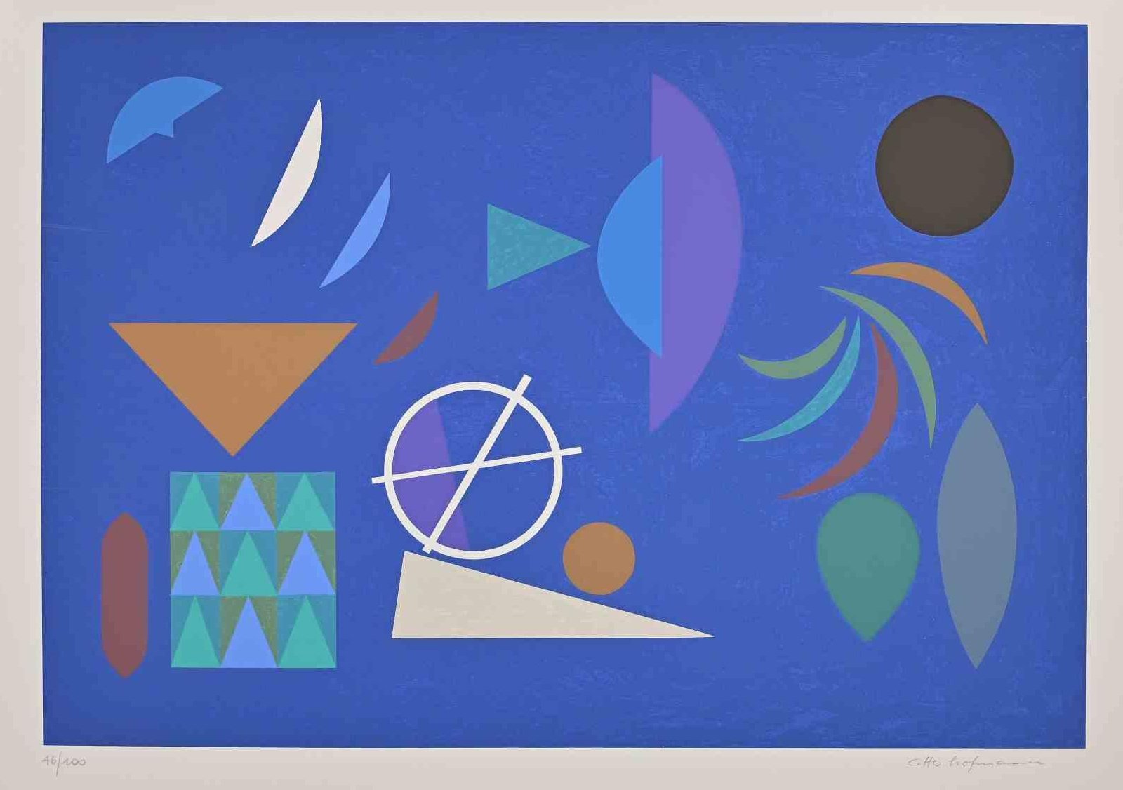 Otto Hofman, Blue Composition, Original Screen Print, 1989