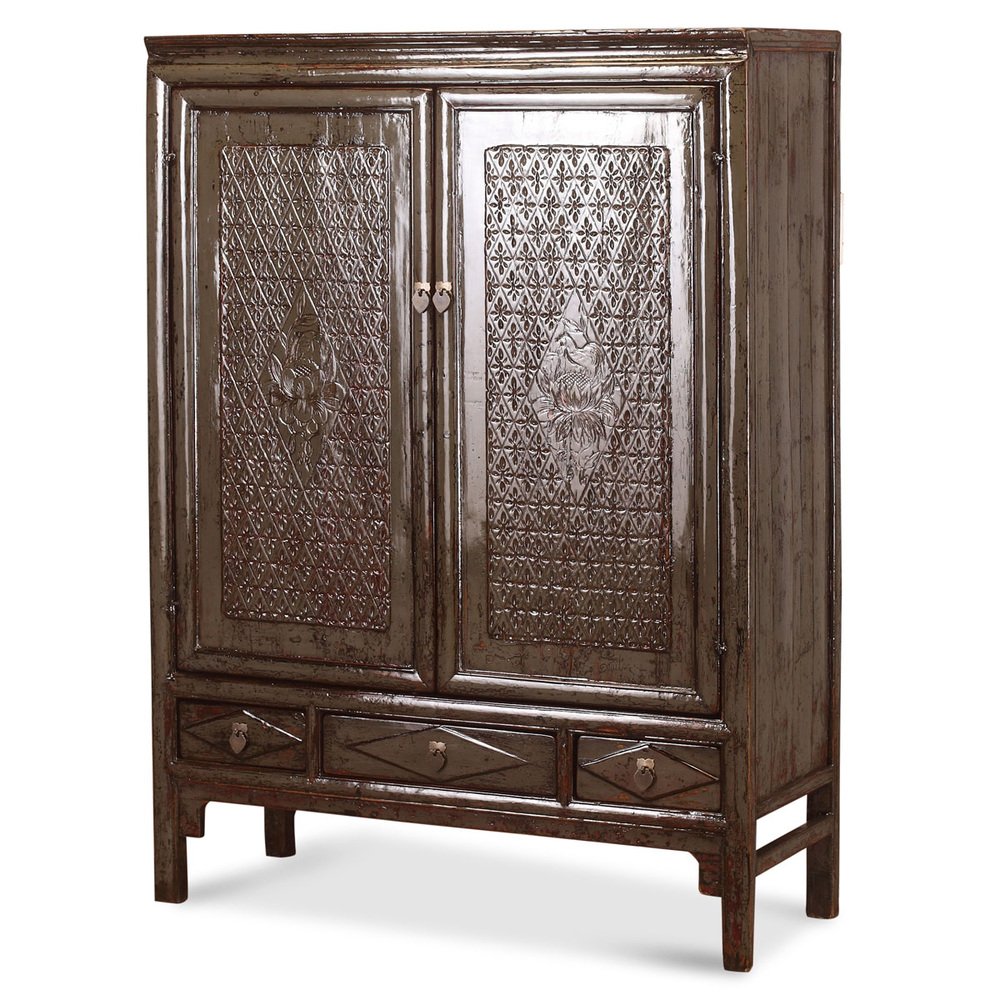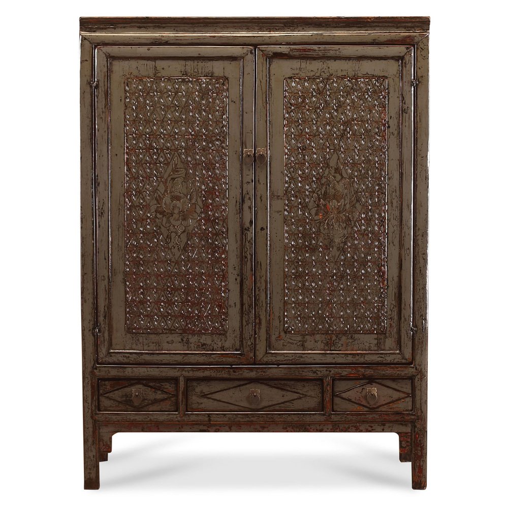 Patterned Gray Lacquer Cabinet