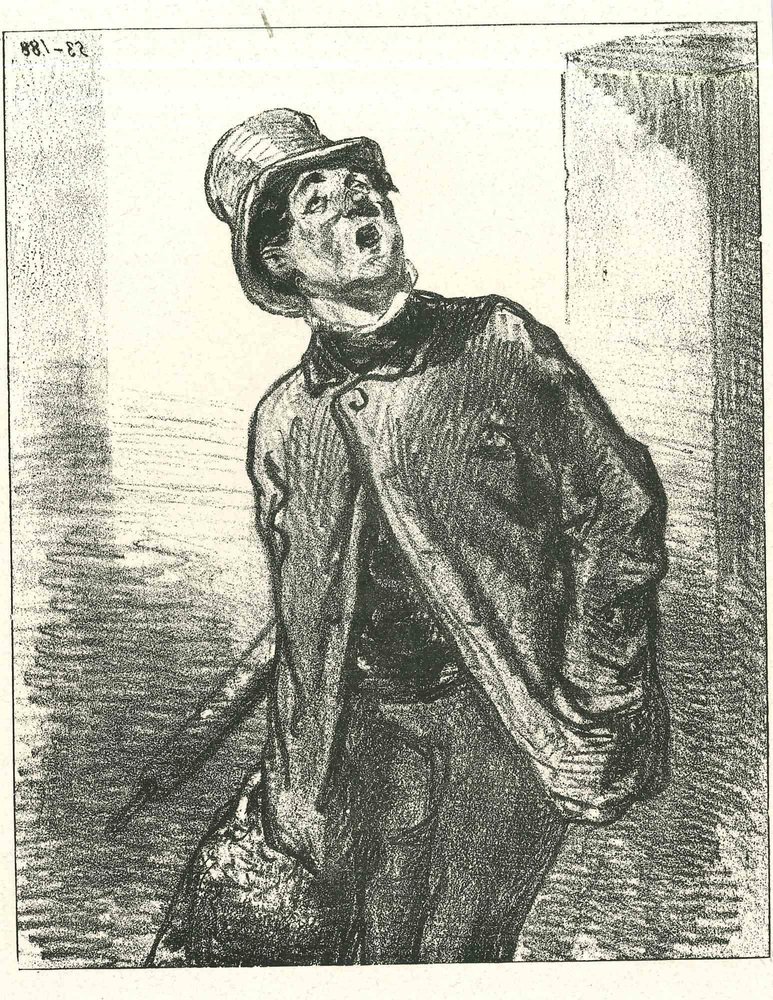 Paul Gavarni, A Watching Man, Original Lithograph, 1881