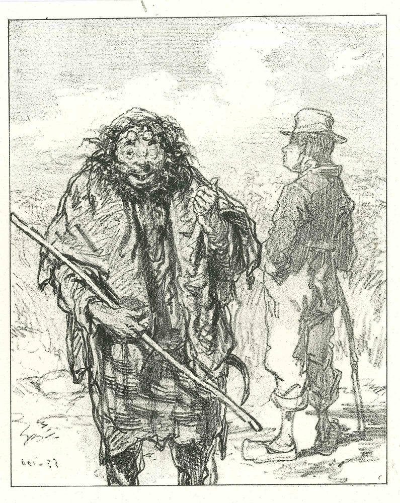 Paul Gavarni, Vagabonds, Original Lithograph, 1881