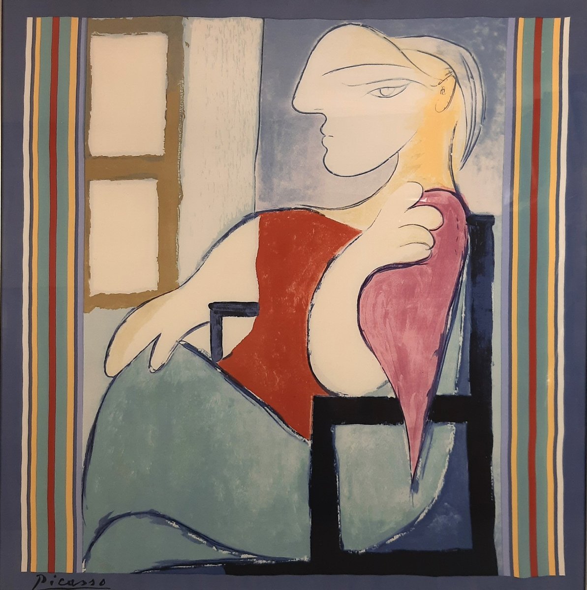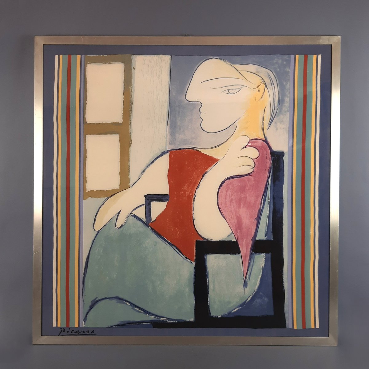 Picasso, Portrait of Marie-Thérèse, 1960s, Lithograph on Scarf, Framed