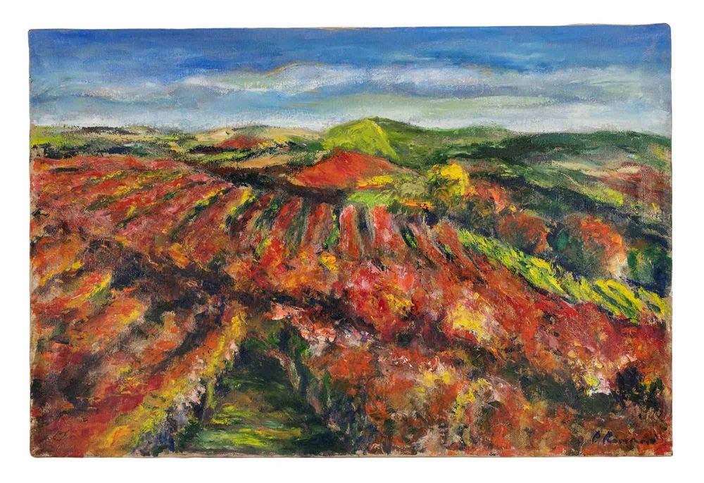 Pino Romanò, Vineyard in Autumn, Oil Painting, 1999