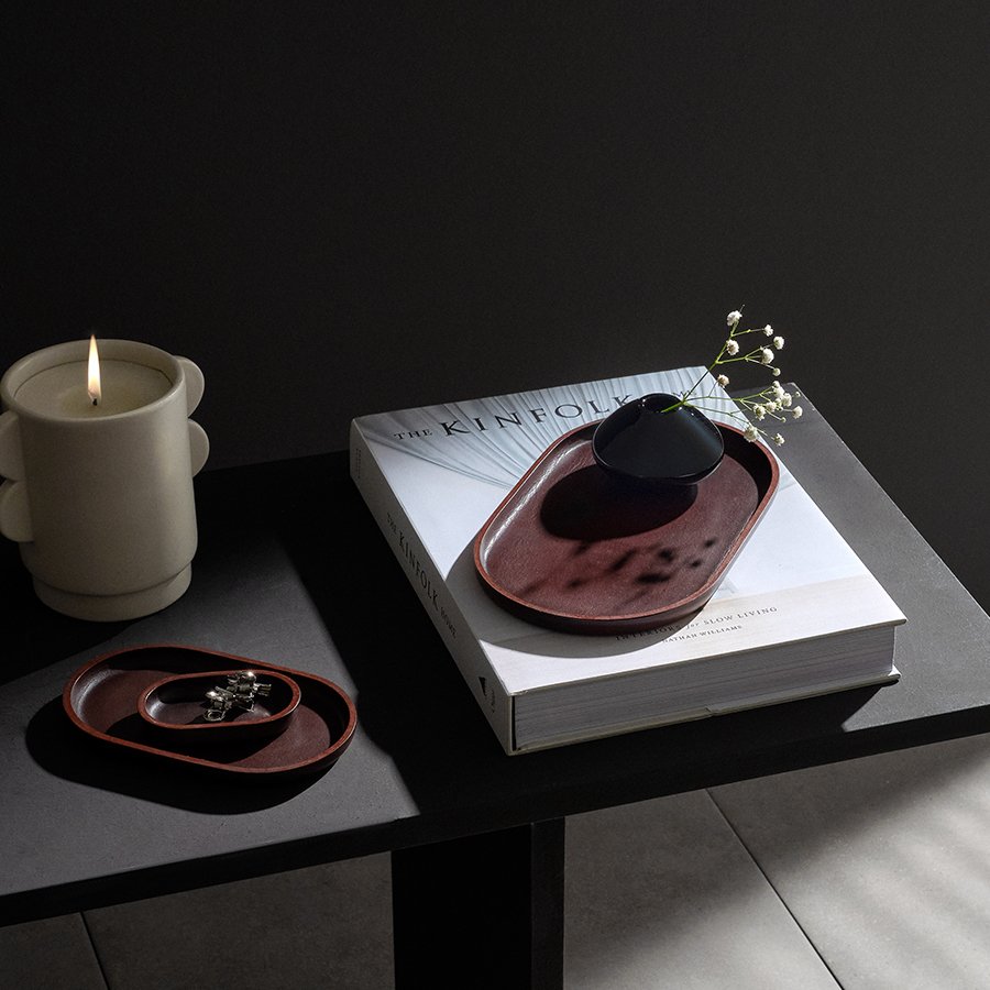 In addition to their own designs, UNIQKA’s founders have collaborated with an impressive list of designers including Jacob de Baan, Bilge Nur Saltik and CARA \ DAVIDE. The collection comprises of handmade sculptural modern lighting pieces, side tables, and smaller office accessories to adorn any workspace or home with organizational functionality as much as stylistic originality. Merging flowing curvaceous leather-bound shapes with angular metal structures and organic materials work in harmony to lend a calming geometric balance and understated elegance to each piece. While local artisans produce the wooden, metal, and glass elements; leather is Kerem and Merve’s material of choice, not only because it is widely used in the influential artwork of Koray Aris but also due to its sustainability. Creating all the leatherwork by hand, the founding duo source from a small selection of environmentally-friendly suppliers from South America and Europe. When they have leftover pieces, they design new products in which they can incorporate even the smallest piece. They see leather as a precious by-product of the food industry and endeavor to convert it into an eternal form, forging a lasting connection between the creator and user.