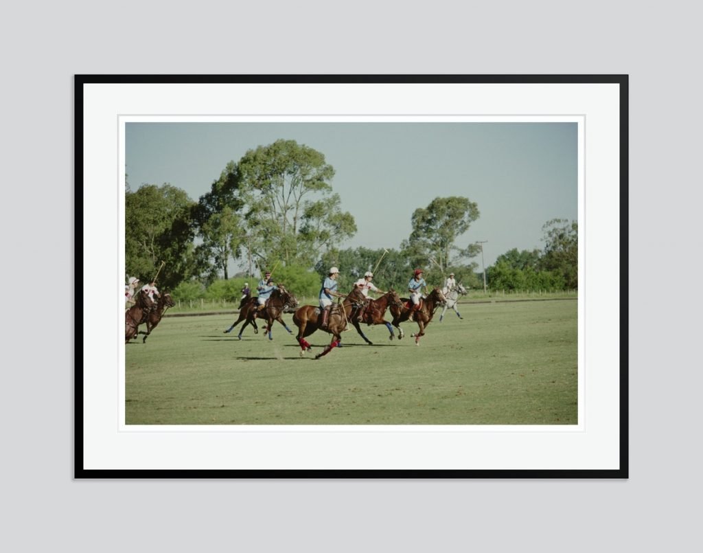 Polo Match Close Up Oversize C Print Framed in Black by Slim Aarons