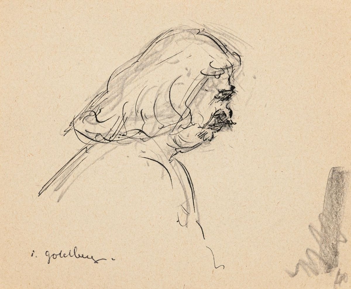 Portrait - Original Pencil and Ink Drawing by S. Goldberg - Mid 20th Century Mid 20th Century