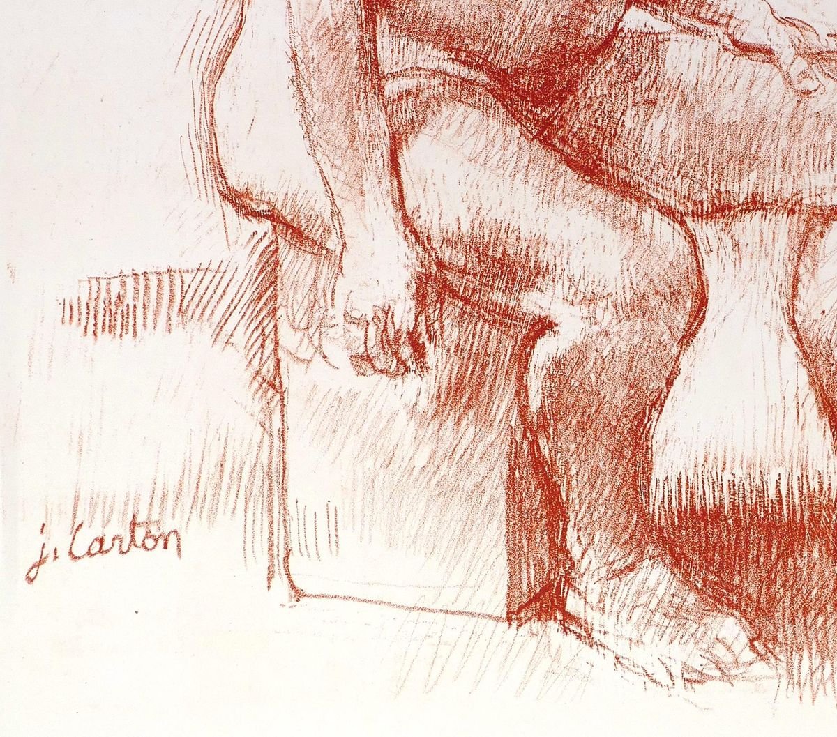 Pregnancy - Original Sanguine Drawing by Jean Carton - Mid 20th Century mid 20th century