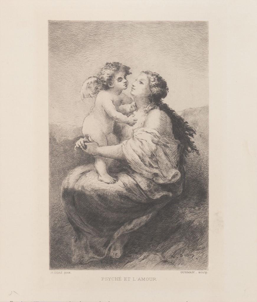Psyche and Love Etching on Paper by Narcisse Virgilio Diaz, 1800