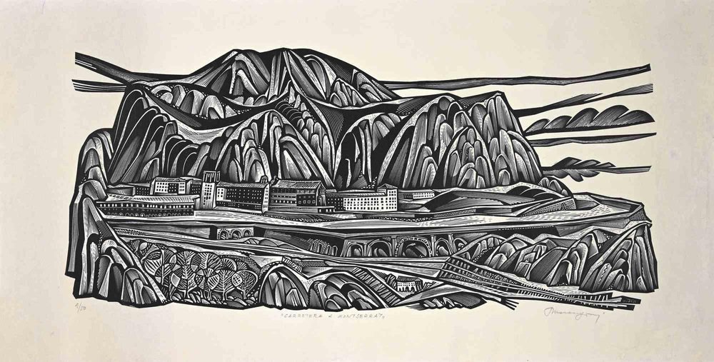 Quiet Marangoni, Carretera in Monserrato, Original Woodcut, Mid -20th-Century