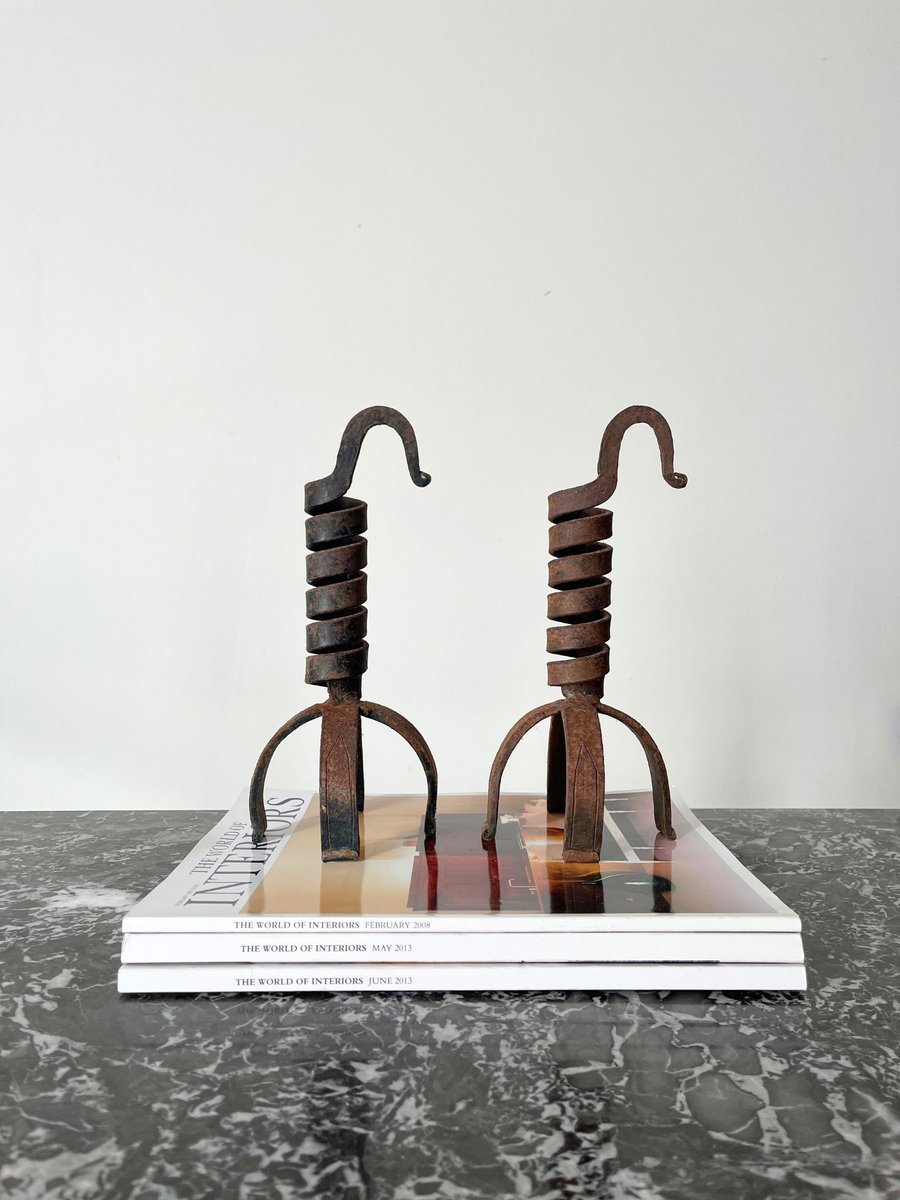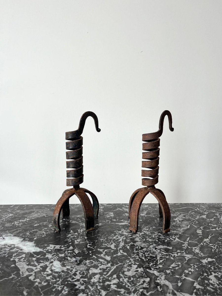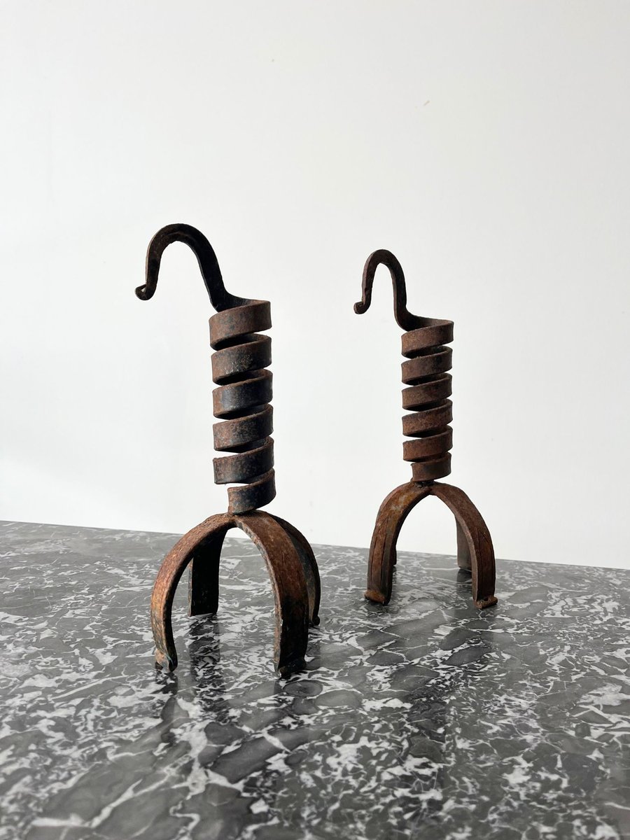 Rat De Cave Antique Wine Cellar Candlesticks in Wrought Iron, 1890s, Set of 2