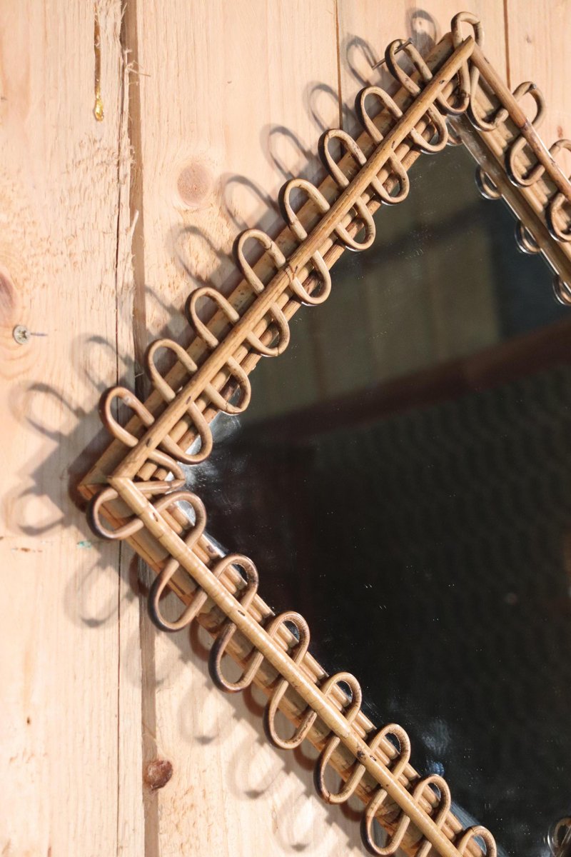 Rattan Mirror and Wall Table by Franco Albini, 1960, Set of 2