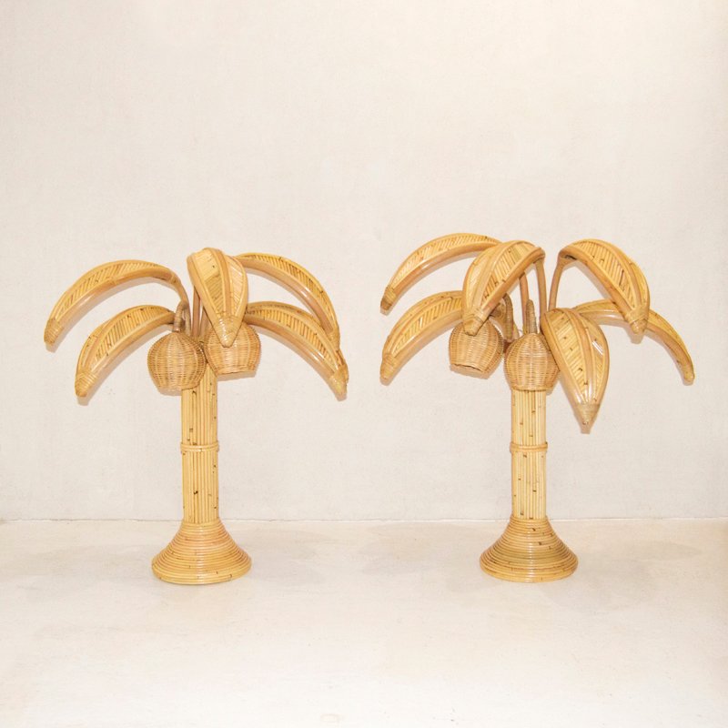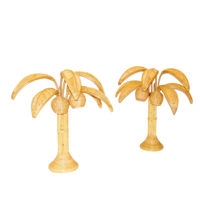 Rattan Palm Table Lamps, Set of 2