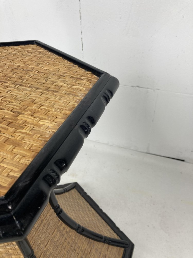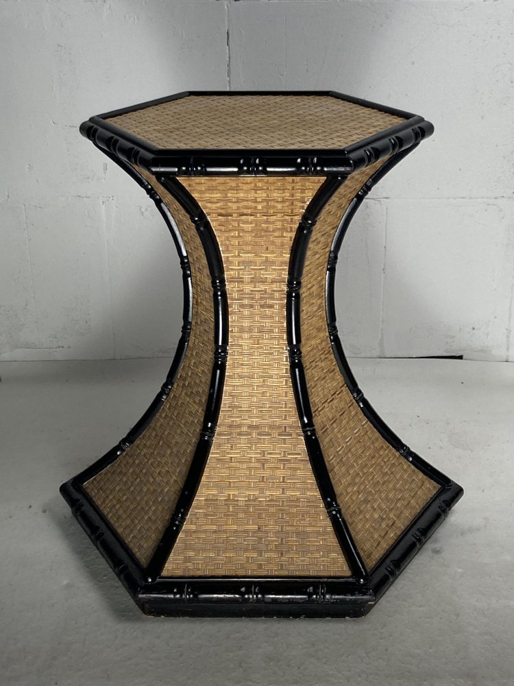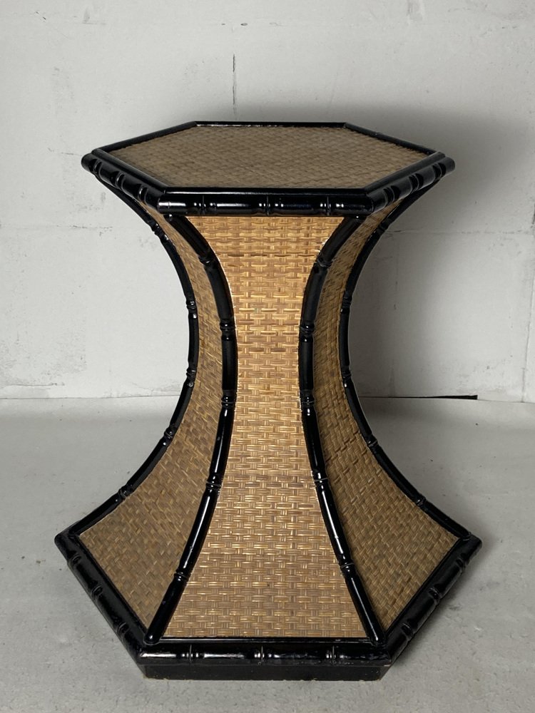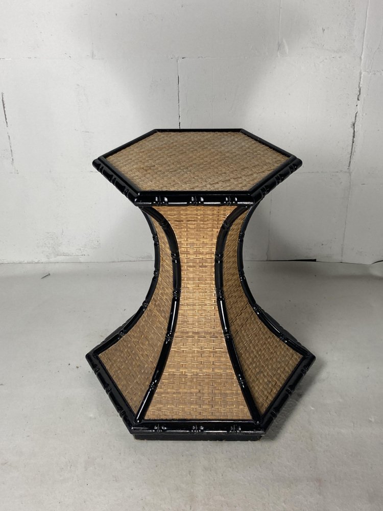 Regency Rattan Bamboo Side Table, 1960s