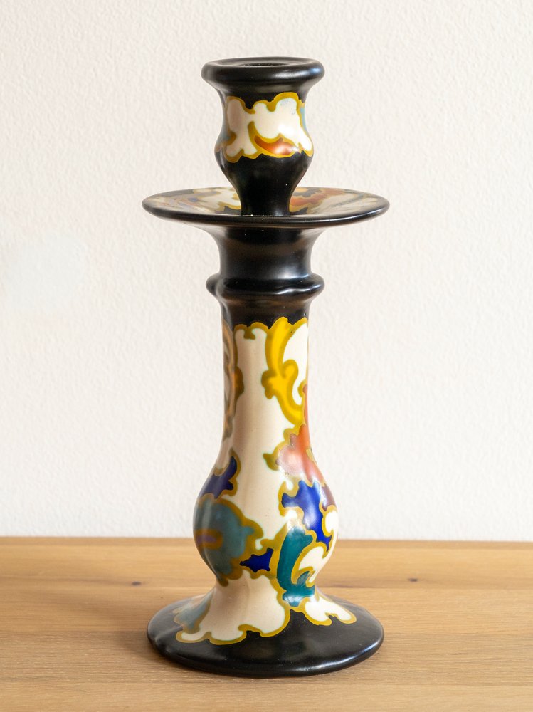 Regina Gouda Rosaria Candlestick, Vibrant Abstract, Mid-Century Dutch Pottery