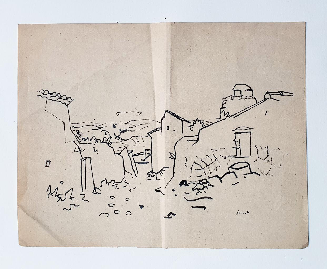 René Gouast, Landscape, China Ink on Paper, 1950s
