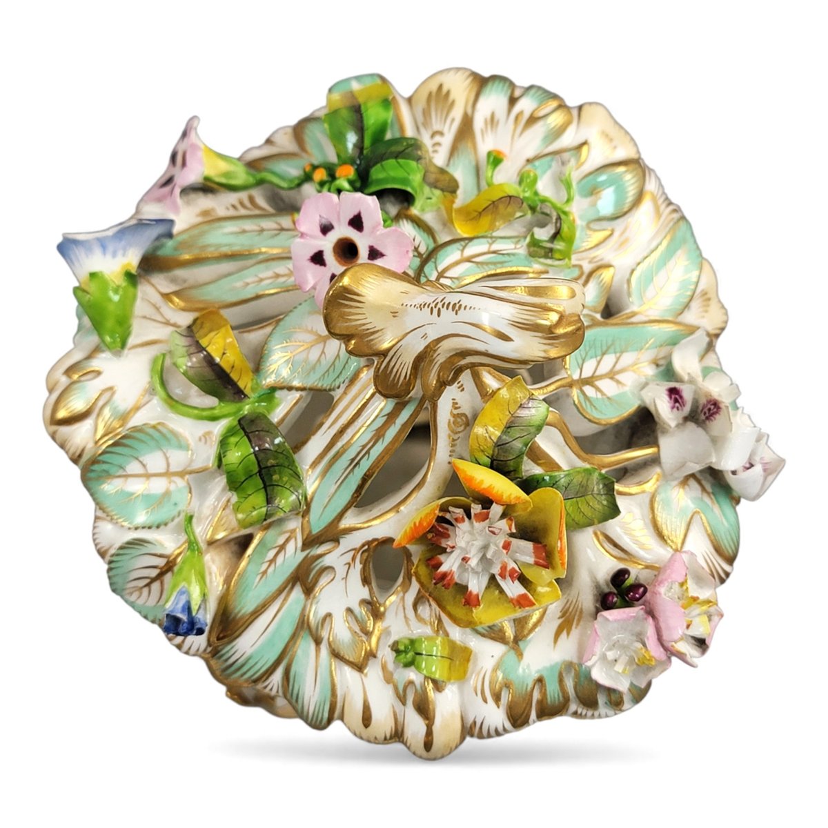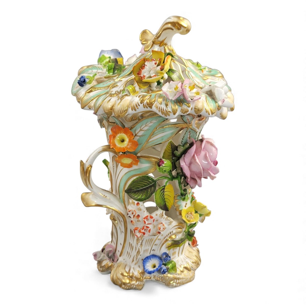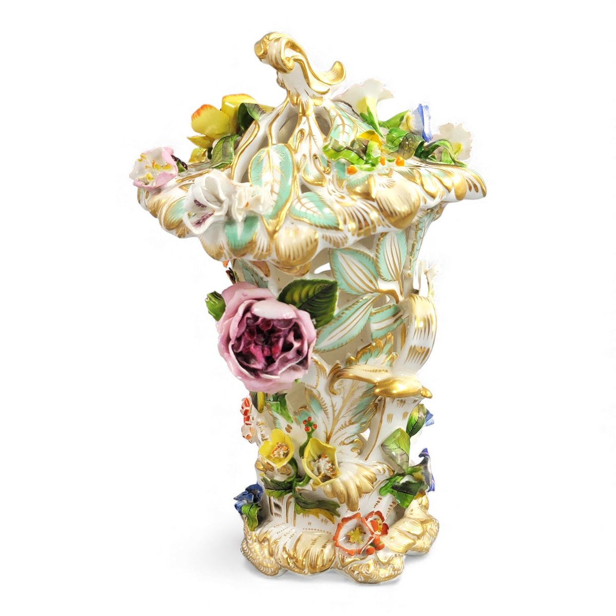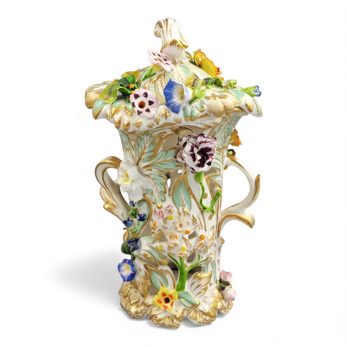 Reticulated Flower-Encrusted Vase with Cover from Coalport, 1835-1845
