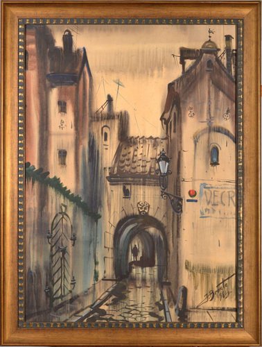 Riga, Watercolor on Paper, Late 20th Century