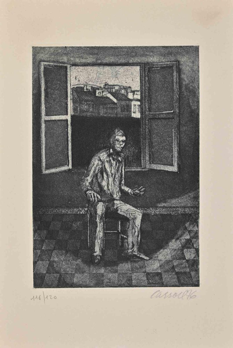 Robert Carroll, Man at the Window, Original Etching, 1976