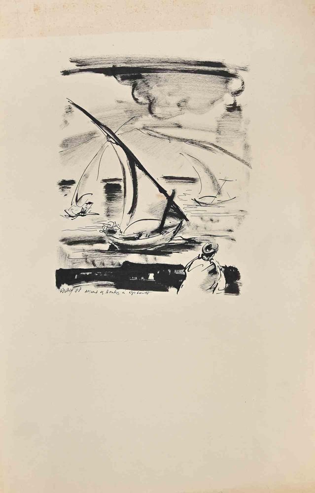 Robert Naly, Boat, Original Ink Drawing, Mid 20th-Century