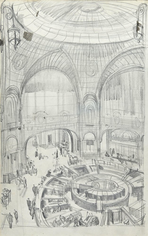 Roger Clamagirand, The Architectural Interior, Pencil, Early 20th-Century