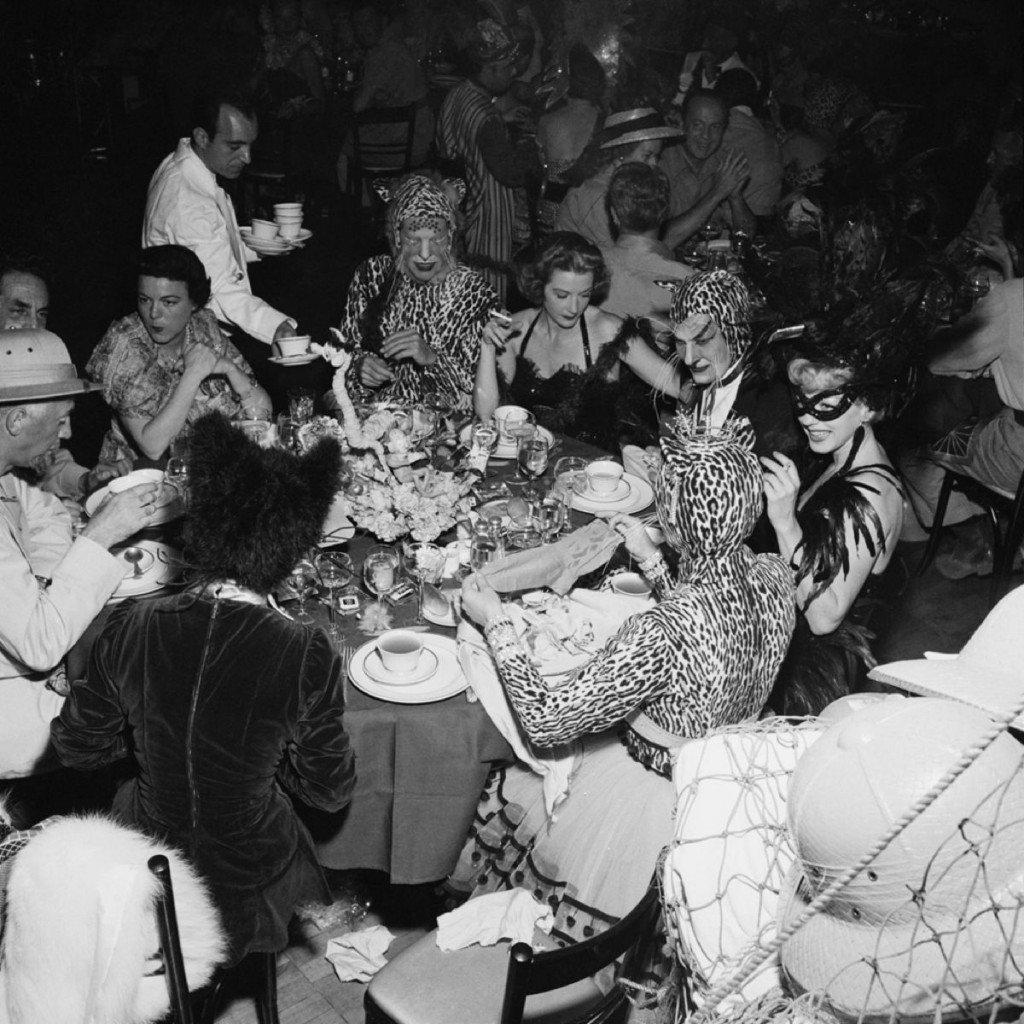 Safari Party Silver Fibre Gelatin Print Framed in Black by Slim Aarons