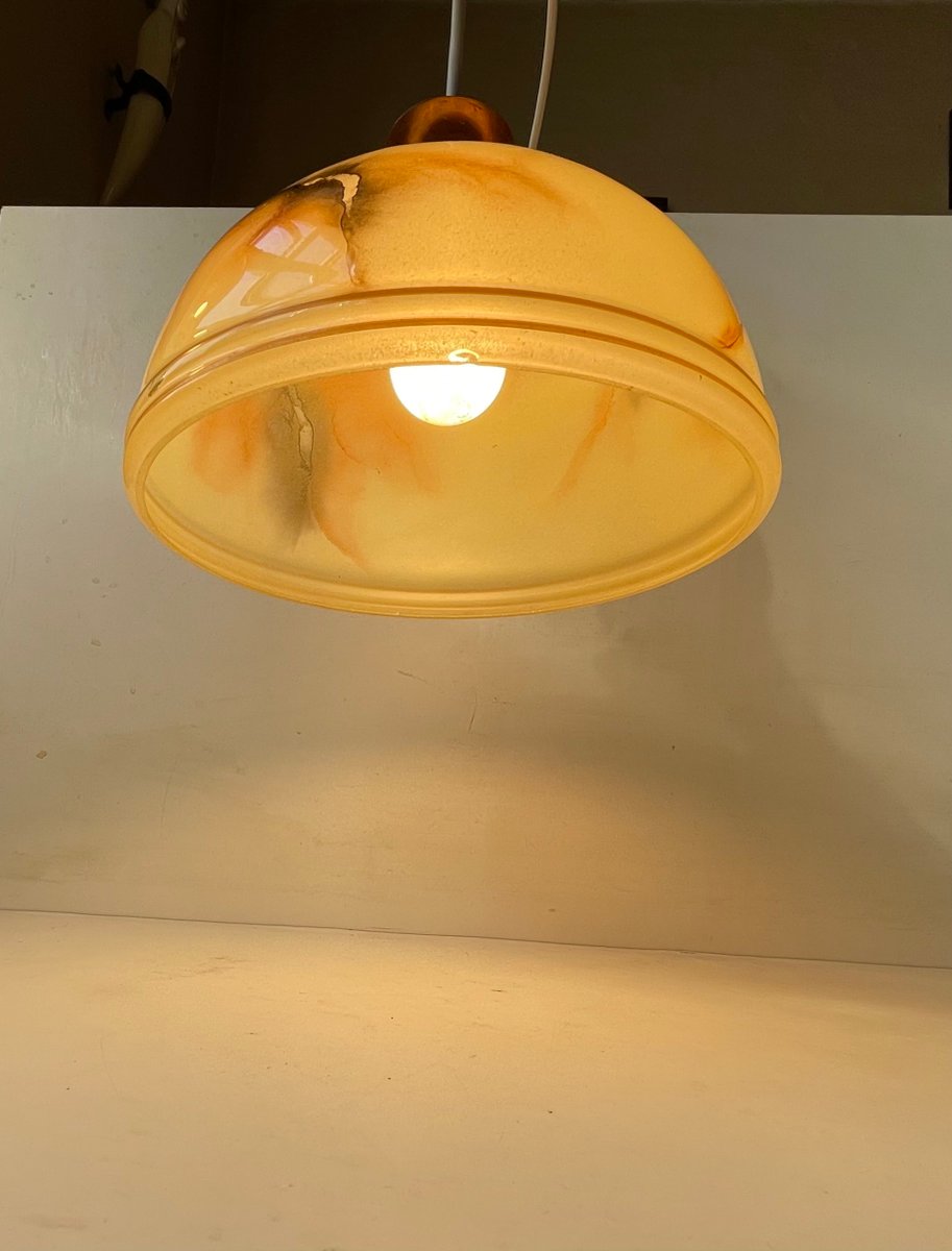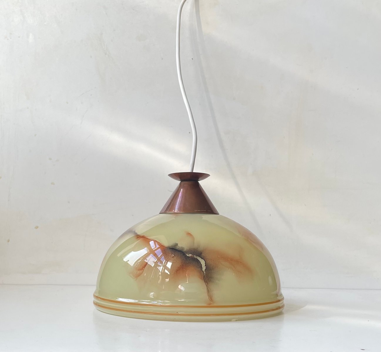 Scandinavian Bauhaus Style Pendant Lamp in Copper and Marble Glass, 1940s
