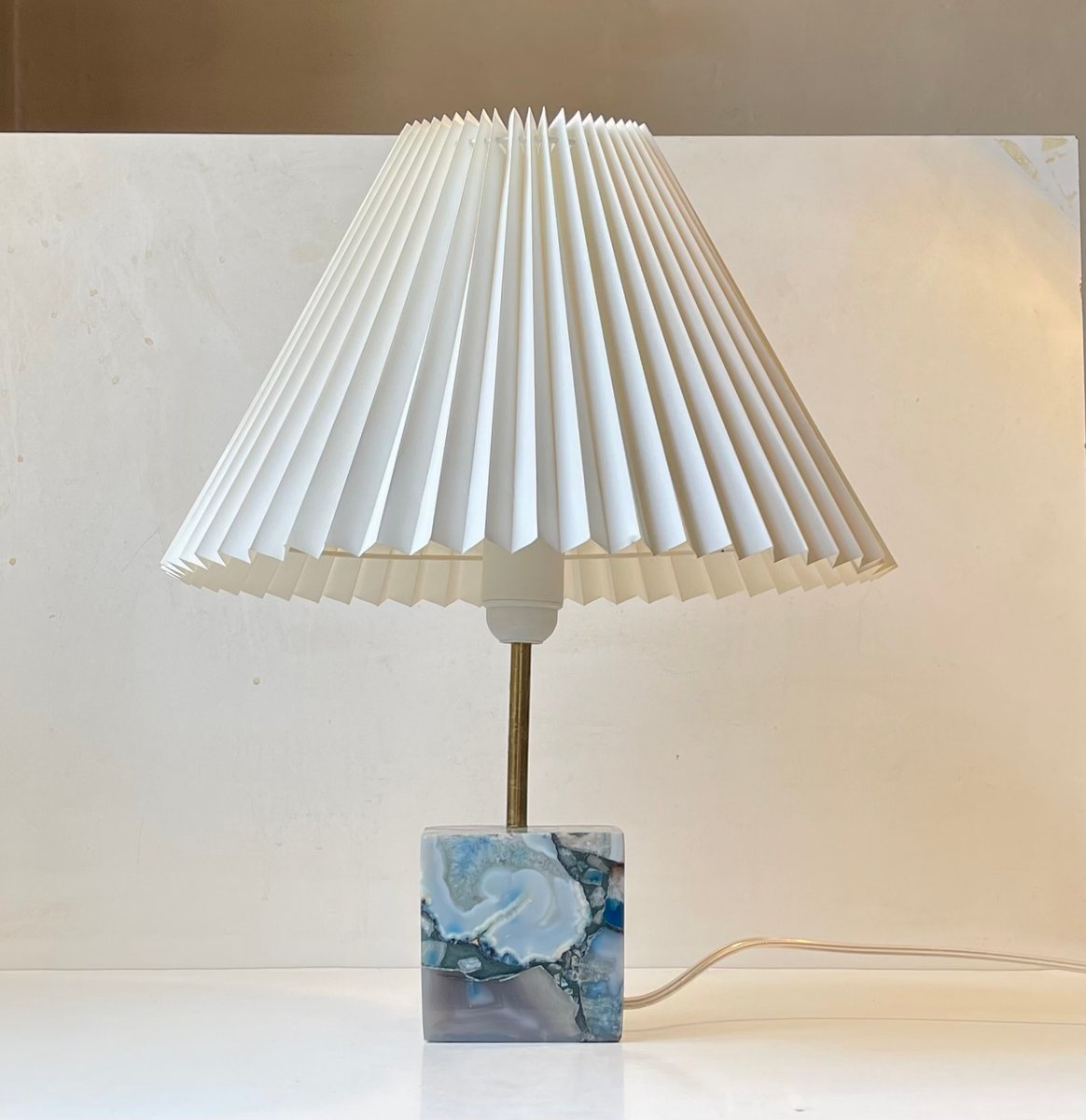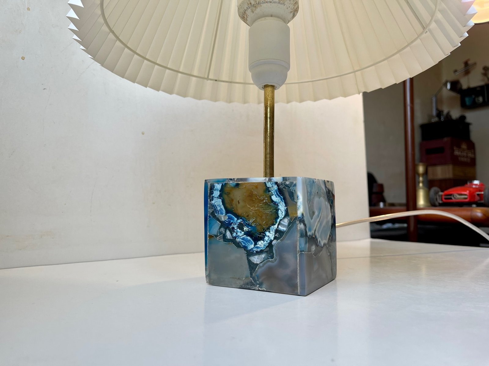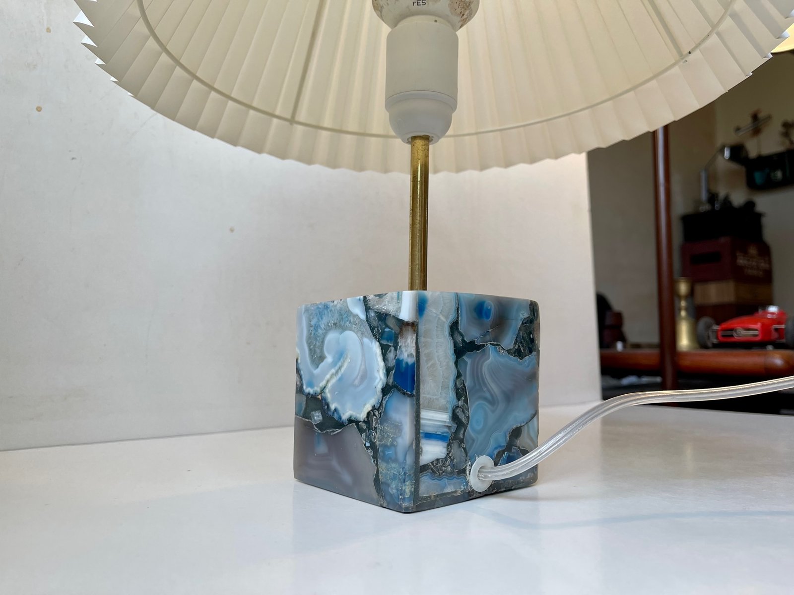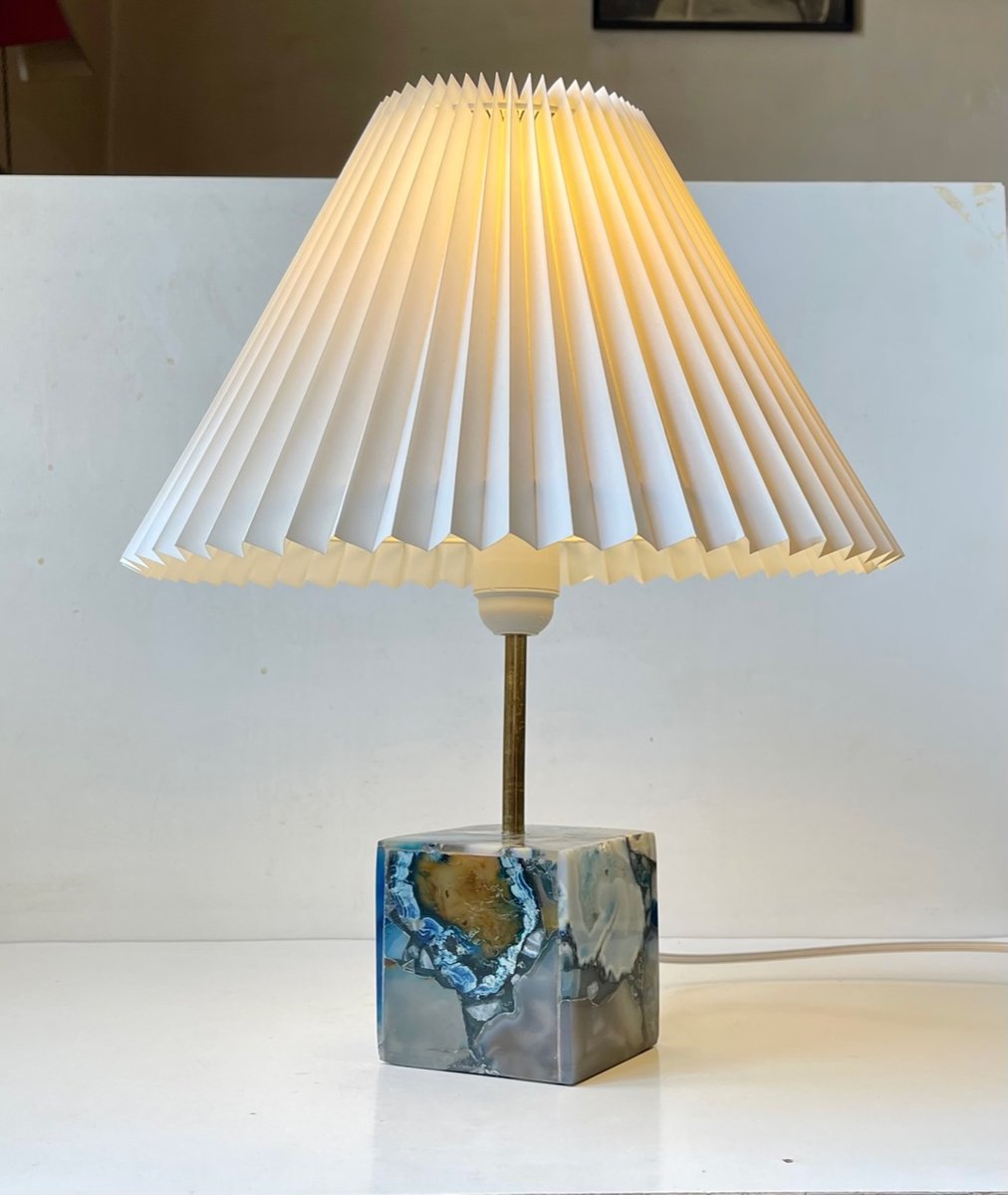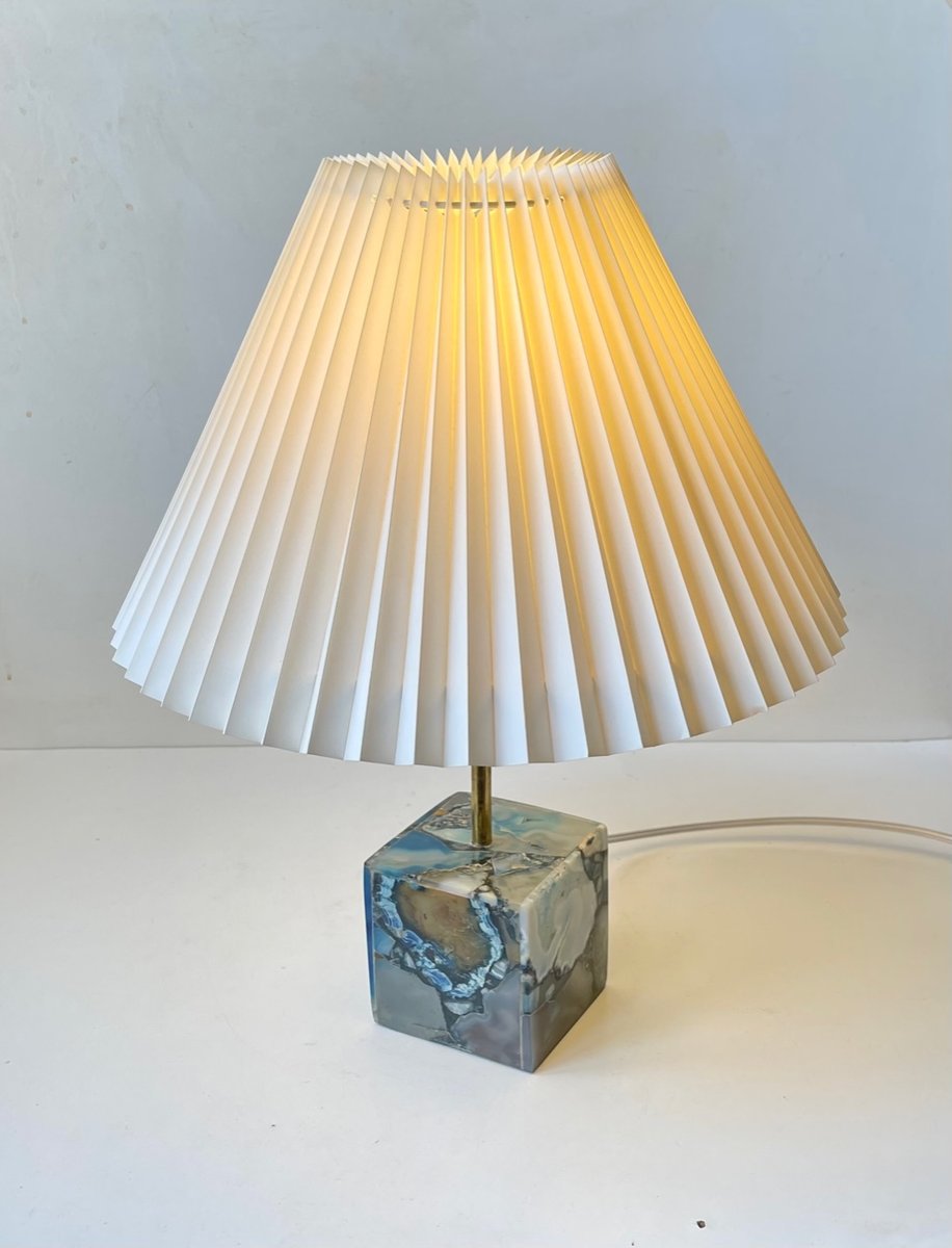 Scandinavian Cubic Table Lamp in Blue Agate