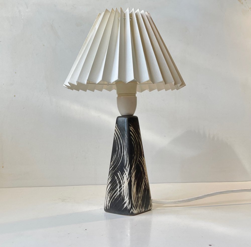 Scandinavian Modern Black White Sgrafitto Table Lamp by Elisabeth Loholt, 1950s