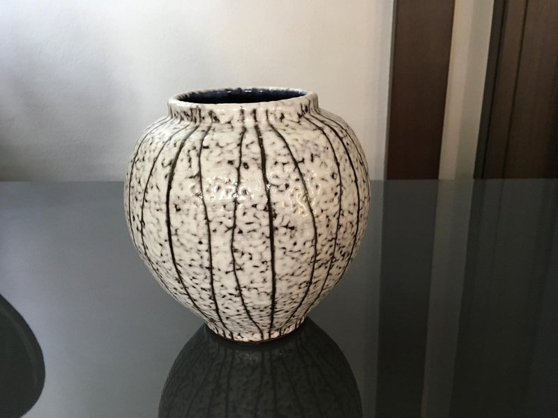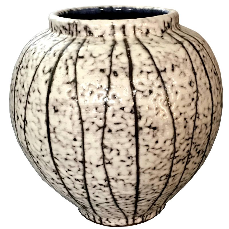 Scandinavian Postmodern Design White Glazed Ceramic Vase, 1990