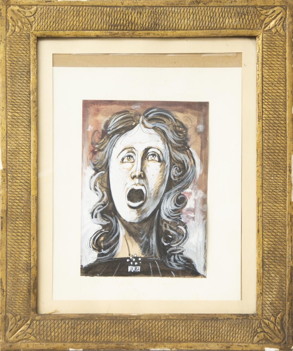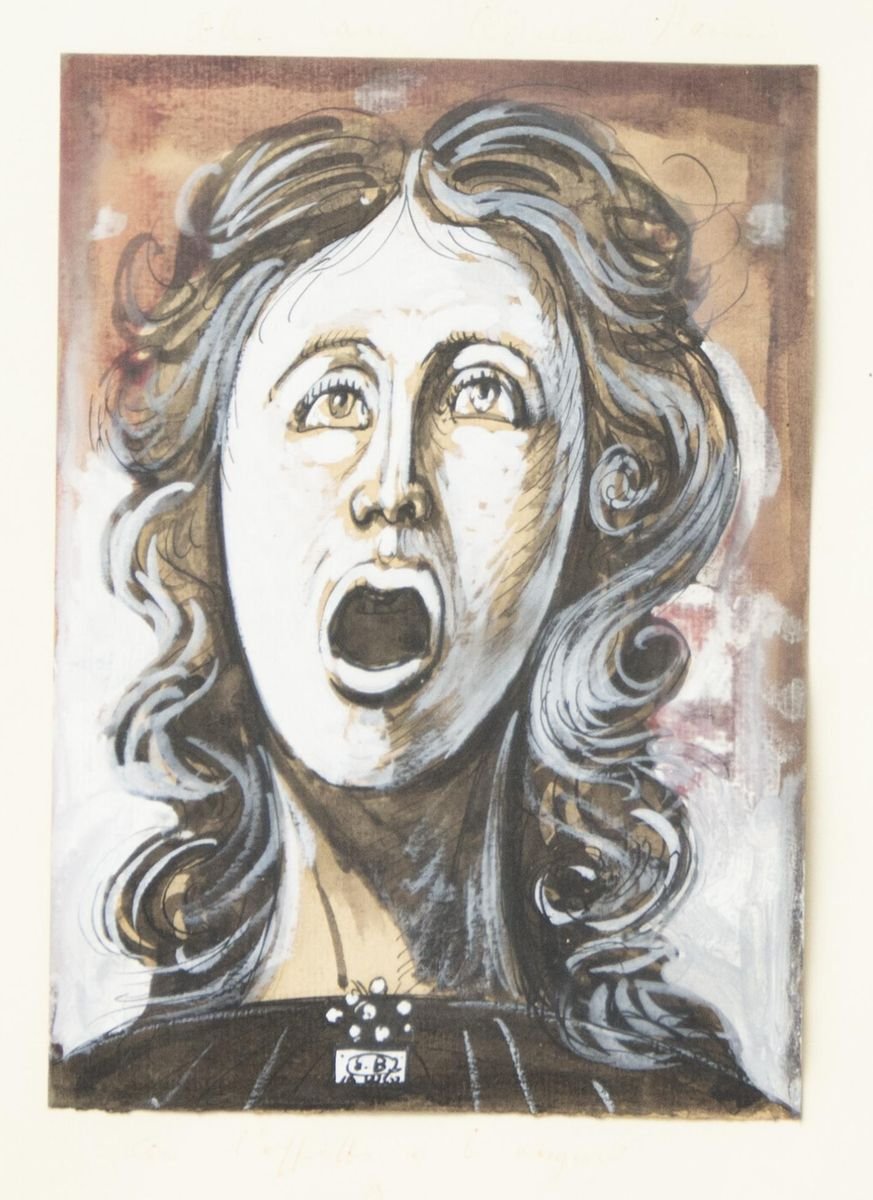 Screaming Woman - Original Tempera, Ink and Watercolor by E. Berman - 1960s 1960s