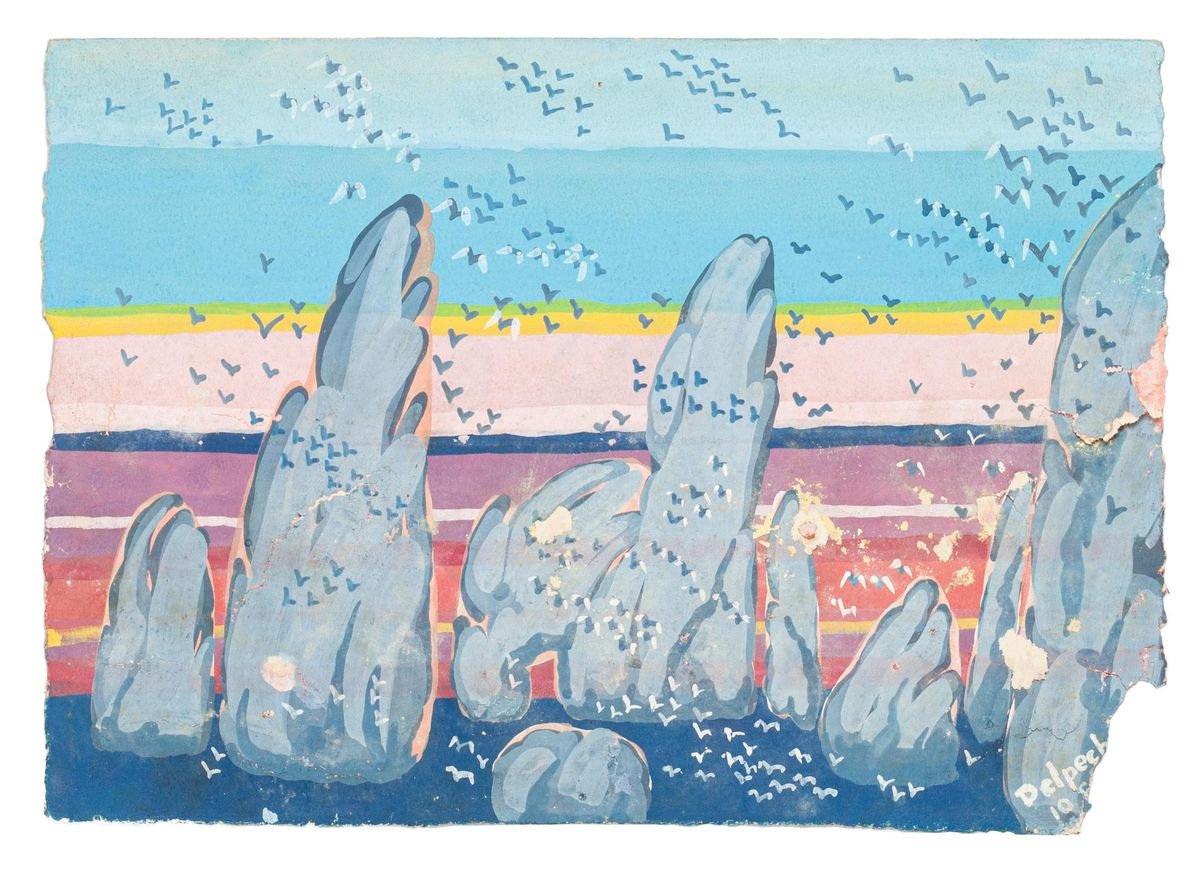 Seagulls - Watercolor on Paper by J.-R. Delpech - Mid 20th Century Mid 20th Century