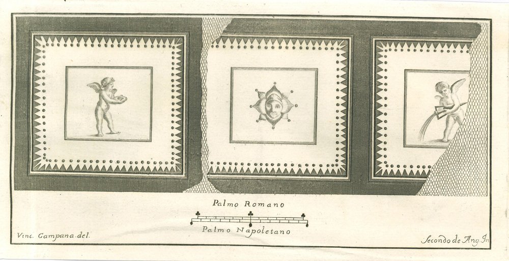 Secondo De Angelis, Pompeian Fresco, Etching, 18th Century