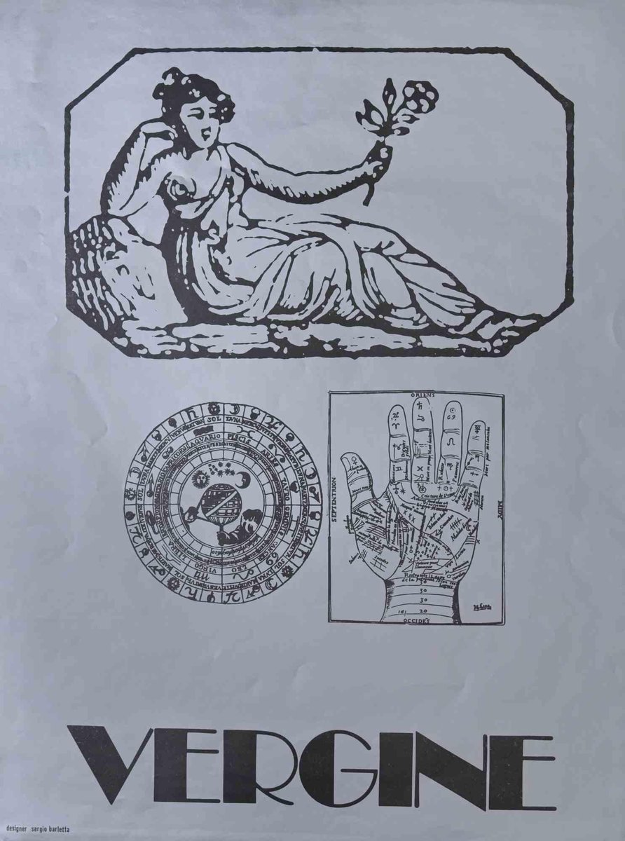 Virgin is a screen print on grey paper realized by Sergio Barletta in 1973. 68 x 50 cm. Good conditions except for some some signs of the time on the margins. Sergio Barletta (1934) is an Italian cartoonist and illustrator, who has also published some humorous and political satire books. from the age of 22 is active in Rome, where he worked as an illustrator and art director in some monthly magazines like “Costume”, Diners Club house organ, BP Review, IBM, and others. In 1965 started the joint-working with Marino Gallery in Rome, and in 1966 in Milan with Humour Graphic’s group, at Levi Gallery and others in the following years. In these years graphic work and illustration are mixed with painting and photography, also with satirical drawings for Rinascita, weekly of the Italian communist party; Azione Sociale, weekly of ACLI Catholic Workers Association; movie posters, advertising for Gucci, some writings for Popular Photography Italiana, lay-outs, writings and illustrations for Avinews, bimonthly for tour operators and so on. During the eighties he starts a long co-operation with satirical weekly “Il Sale”, complemented by a book with Ottaviano edizioni in Milan and others publications in Turin and Rome, all of satirical drawings. In this period he collaborates with Linus, the most important Italian comics monthly, and Harakiri, a humour weekly published in France. Personal and group exhibitions of paintings, collages, drawings, photographs: Galleria Marino – Roma, 1965 Galleria Levi – Milano, 1966 Galleria Petronio – Bologna, 1967 Galleria d’arte moderna Villa Reale – Milano, 1967 Palazzo Costanzi – Trieste, 1967 Galleria del Naviglio – Milano, 1967 Galleria Marino – Roma, 1967 Galleria Libreria Renzo Cortina – Milano, 1968 Galleria Libreria Renzo Cortina – Milano, 1969 Society Art’s Club – Messina, 1970 Galleria Marino – Roma, 1970 Galleria Libreria Renzo Cortina – Milano, 1972 Galleria Marino – Roma, 1972 Galleria Il Diaframma – Milano, 1973 Galleria Libreria Renzo Cortina – Milano, 1974 Galleria Il Ventaglio – Firenze, 1975 Galleria Marino – Roma, 1975 Palazzo Gonfalonieri – Milano, 1976 Bedford House Gallery – London, 1977 Galleria Apicella – Bonn, 1979 Civico Museo Archeologico – Milano, 1980 Palazzo Barberini – Roma, 1981 Palazzo delle Stelline – Milano, 1981 Castello Sforzesco Biblioteca Trivulziana – Milano, 1982 Civico Museo Archeologico – Milano, 1983 Biblioteca Sormani – Milano, 1983 Club Migros – Milano, 1985 Centrodomus – Milano, 1985 Galleria Vittorio Emanuele – Milano, 1988 Galleria d’Arte ex libris – Roma, 1989 Civico Museo Archeologico – Milano, 1989 Palazzo delle Stelline – Milano, 1990 Palazzo d’Arte – triennale Milano, 1991 Galleria Molica Guid’Arte – Roma, 1991 Molica Gallery, West Broadway – New York, 1991 Civico Museo Archeologico – Milano, 1992 Palazzo Mediceo – Serravezza, 1994 Lalit Kala Akademi – New Delhi, 2005 Birla Academy of Art and Culture – Calcutta, 2005 Galleria Marino – Roma, 2011