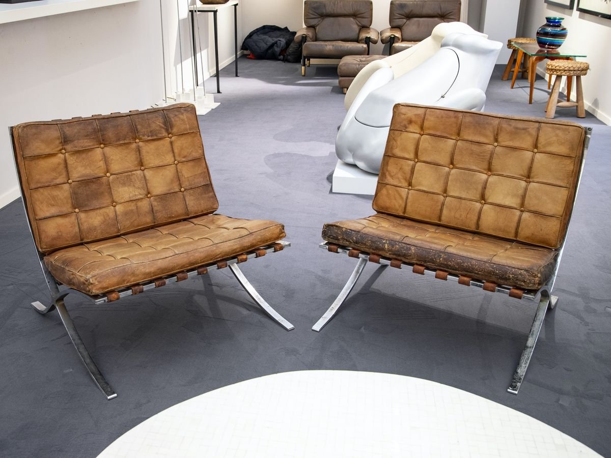 During the 1920s, Mies was active in Berlin’s avant-garde circles, participating in organizations like the Novembergruppe and Zehner Ring and contributing to the magazine G. He began studying and designing skyscrapers, which, while not built, portended future designs. He also directed the Weißenhofsiedlung exhibition in Stuttgart, a model housing colony project for which he invited the era’s most accomplished European architects to participate—including Walter Gropius and Le Corbusier—and 20 permanent residential buildings were built around his own steel-framed apartments, revealing a series of individual interpretations of workers’ housing. This project introduced him to Lilly Reich and the pair collaborated frequently over the next decade. His other major project of this era was the German (or Barcelona) Pavilion, built for the German section of the 1929 Barcelona International Exposition, which helped establish him on an international stage. Using glass and marble interior walls that could be easily moved, he merged interior and exterior spaces, emphasizing a fluidity of space and incorporating specially designed furniture, including the iconic leather and chrome Barcelona chair. Shortly after, in 1932, his work was included in the first architectural exhibition at the Museum of Modern Art in New York, entitled Modern Architecture: An International Exhibition, which helped introduce his work to an American audience. From 1930 to 1933, he served as Director of the Bauhaus; under political pressure from the Nazis, he moved the school from Dessau to Steglitz, Berlin and ultimately closed the school in 1933.