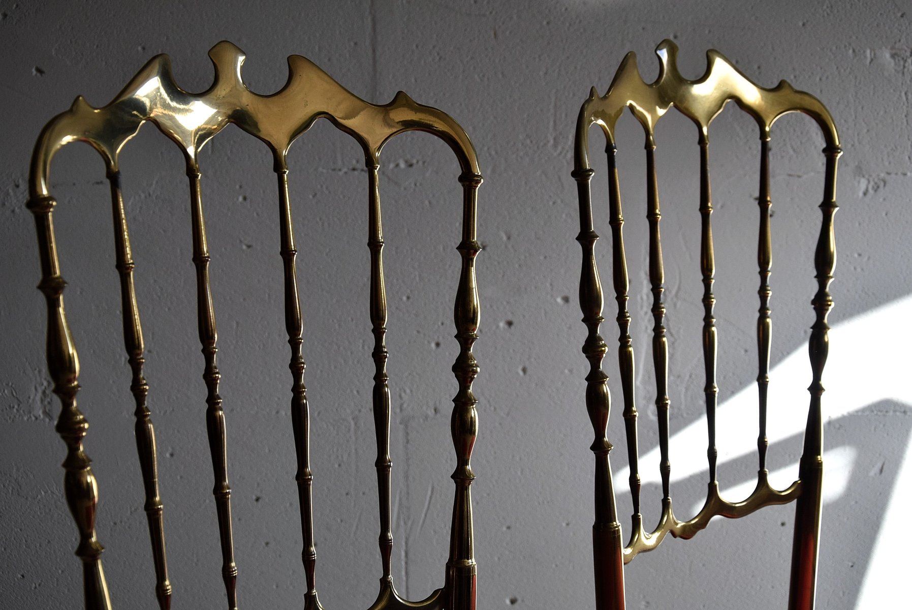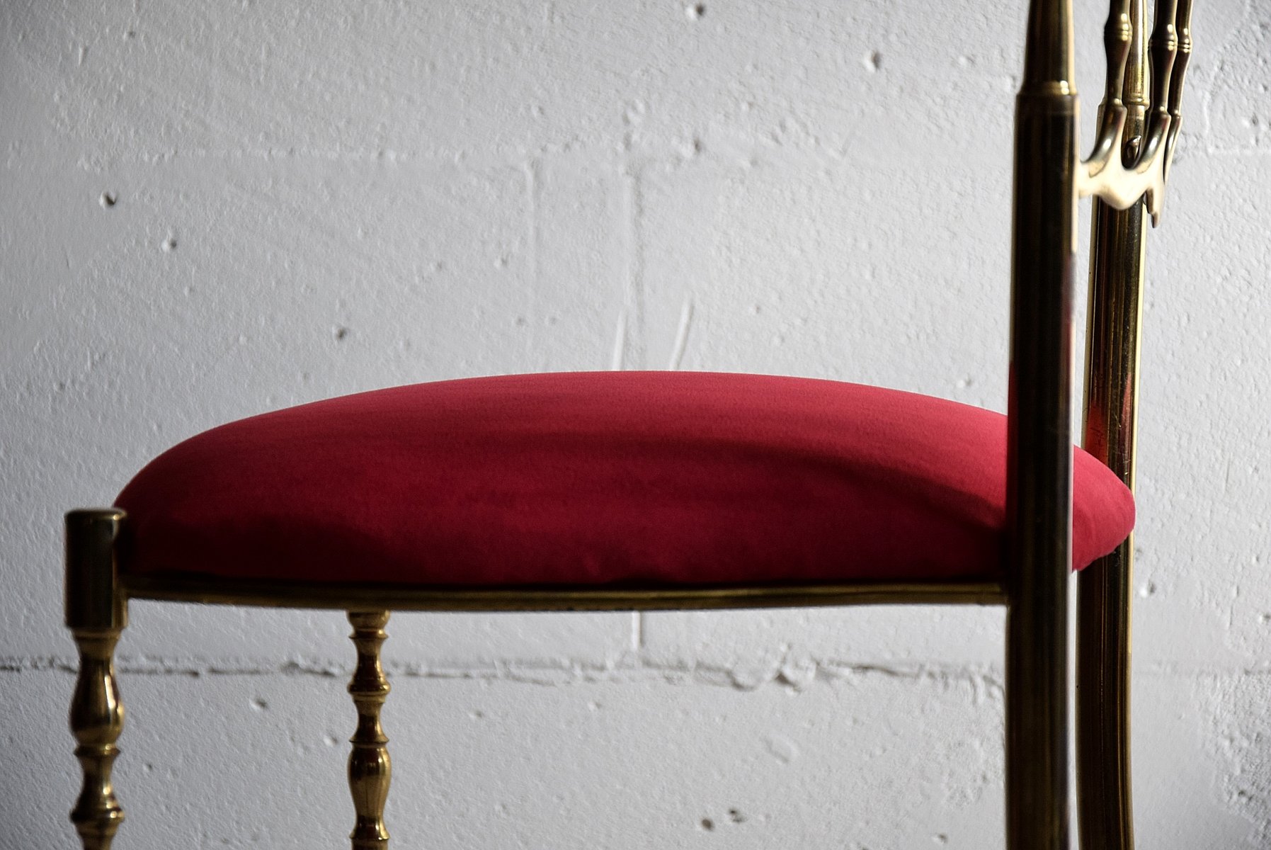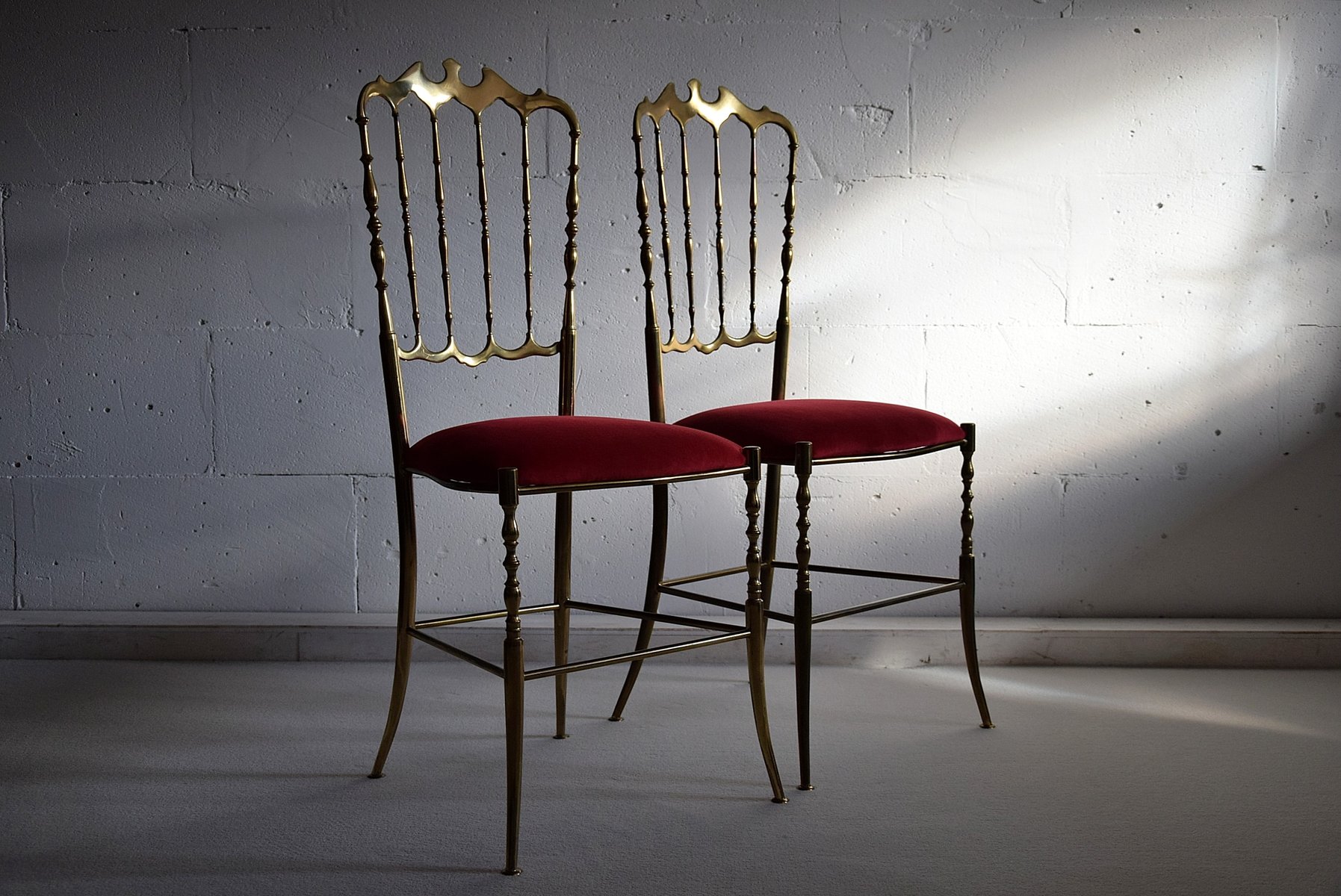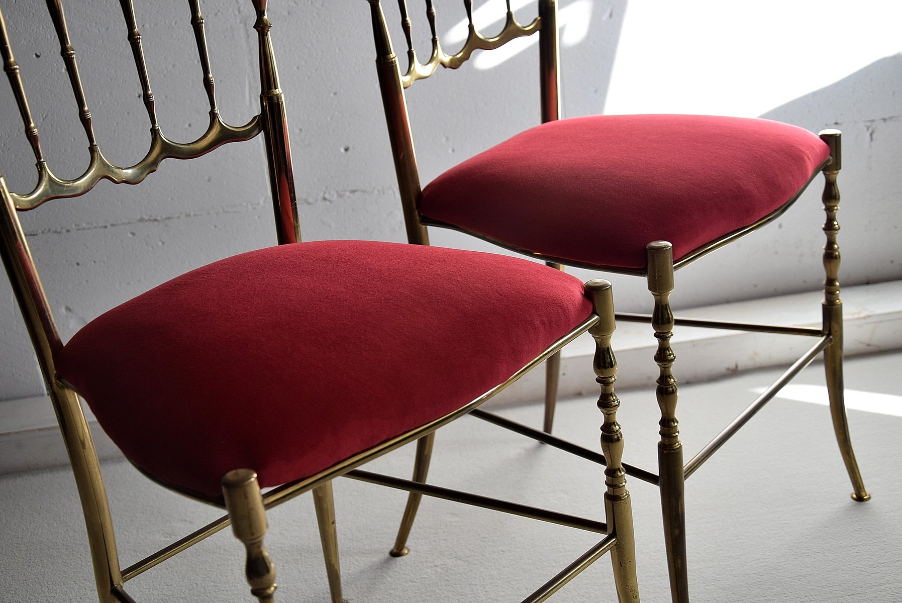 Set of Brass & Red Velvet Chiavari Chairs, 1950s