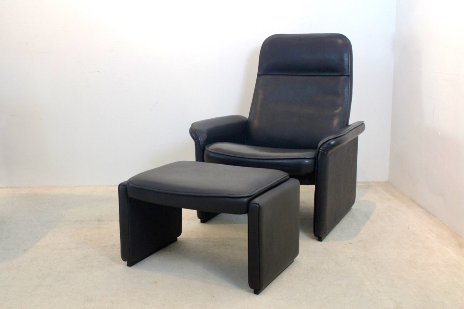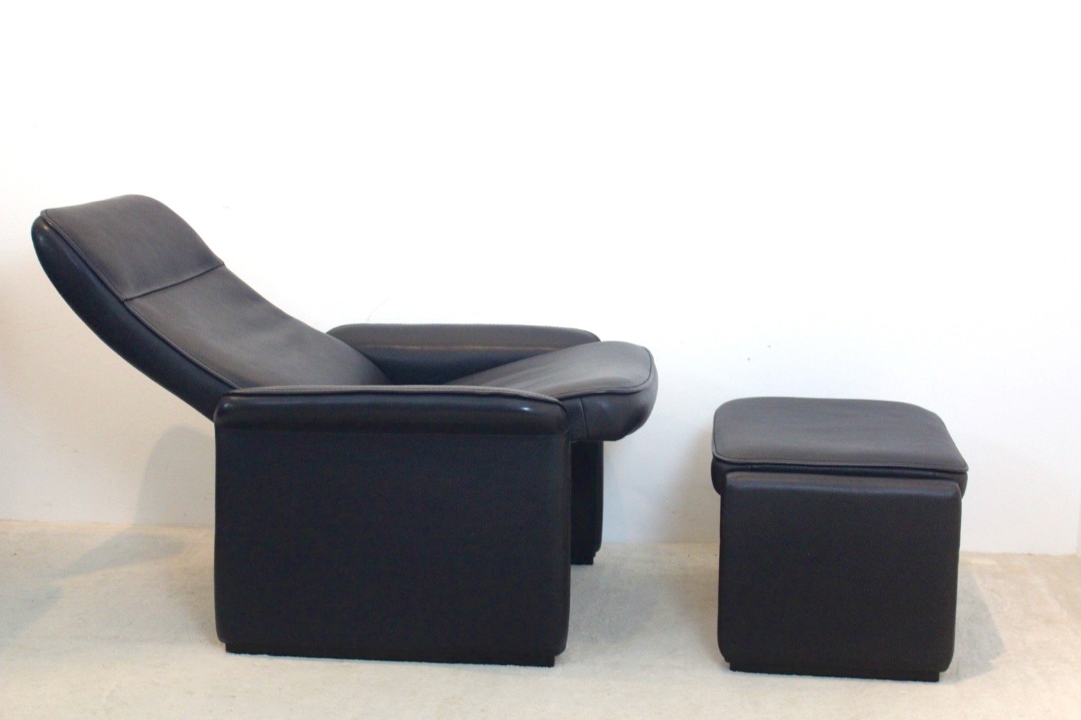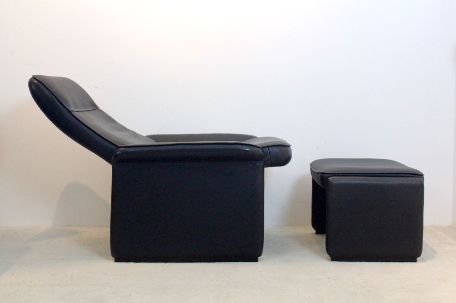 Set of DS-50 Adjustable Lounge Chair and Ottoman in Soft Thick Black Neck Leather from de Sede, 1970s