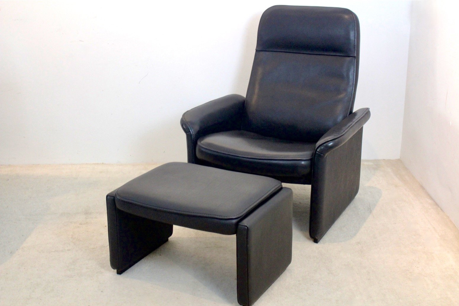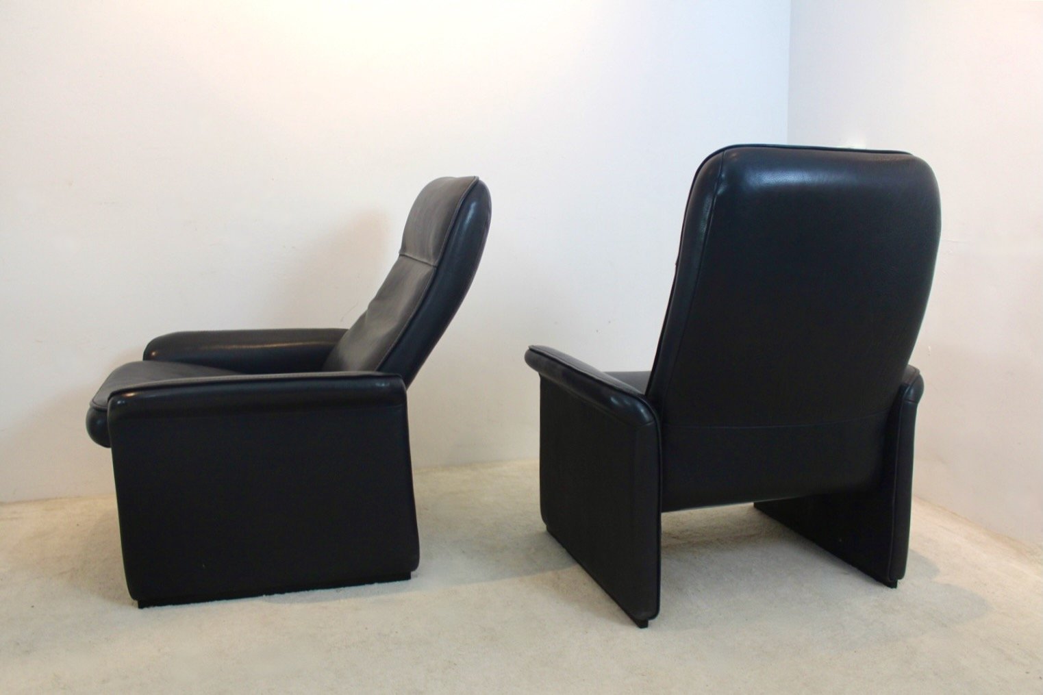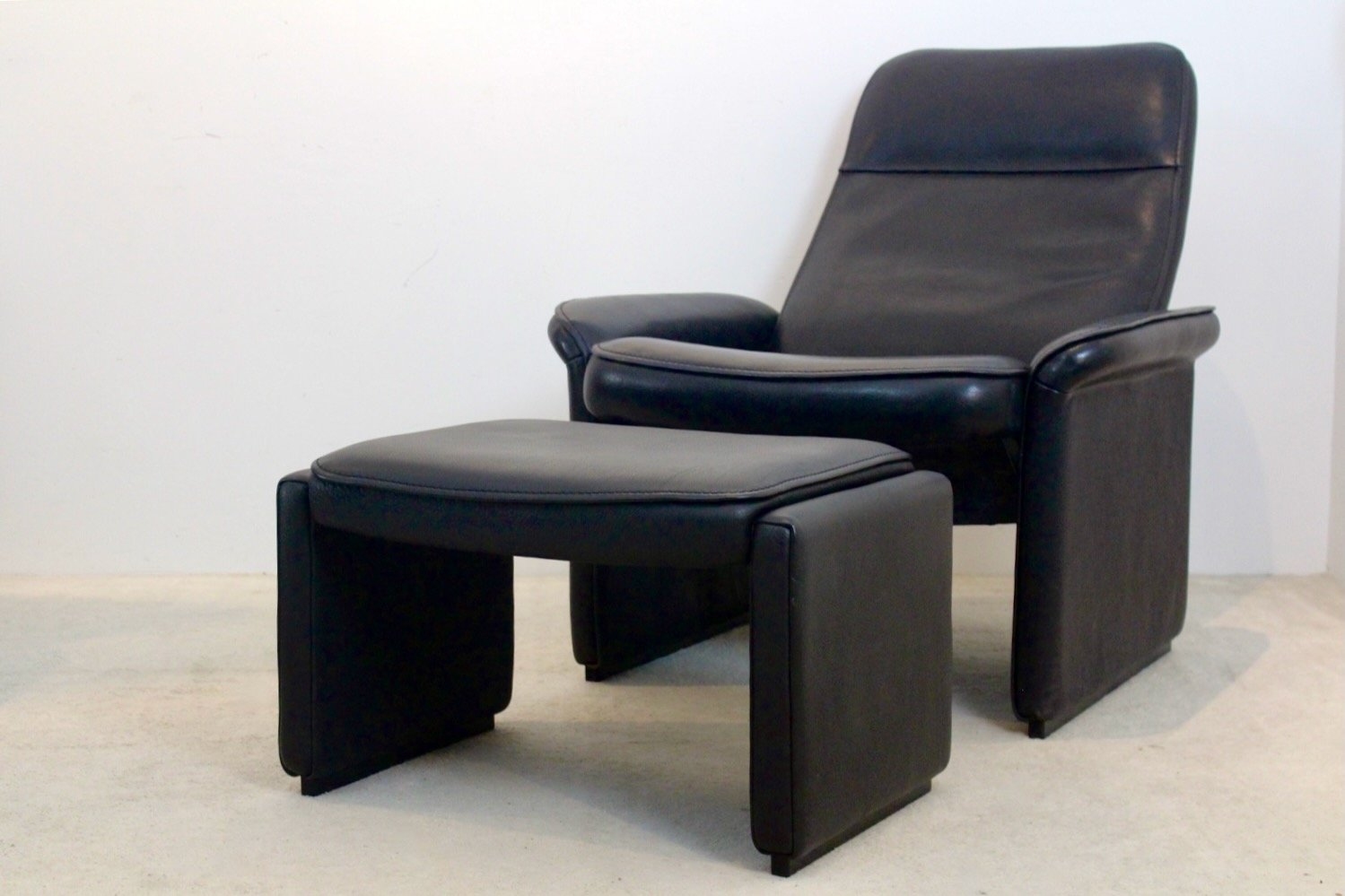 Set of DS-50 Adjustable Lounge Chair and Ottoman in Soft Thick Black Neck Leather from de Sede, 1970s
