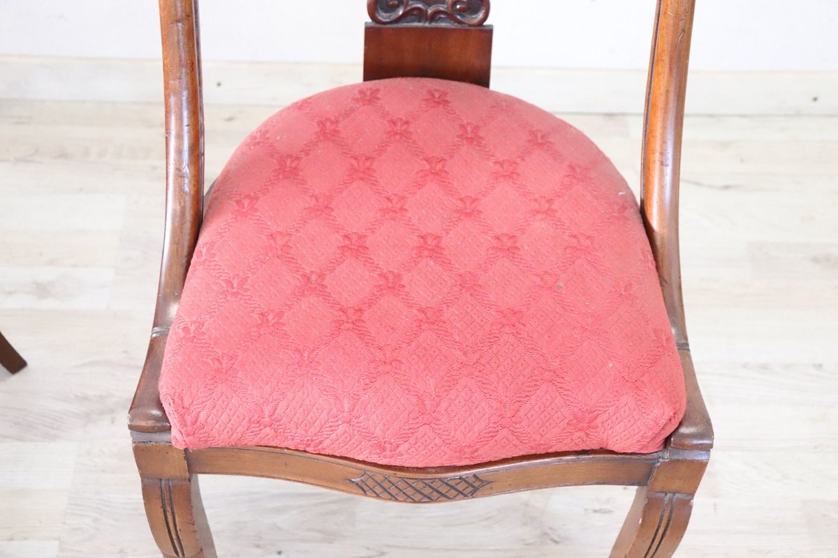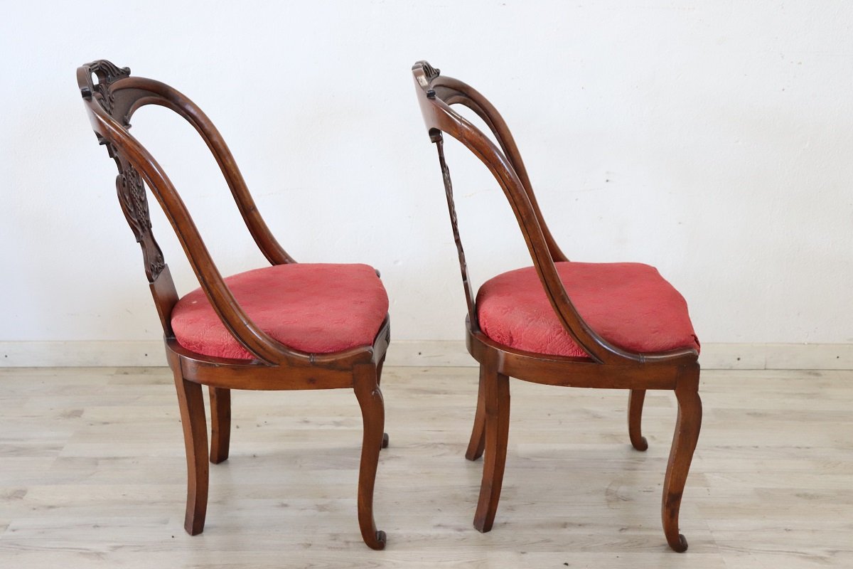 Set of Early 19th Century Dining Chairs in Carved Walnut