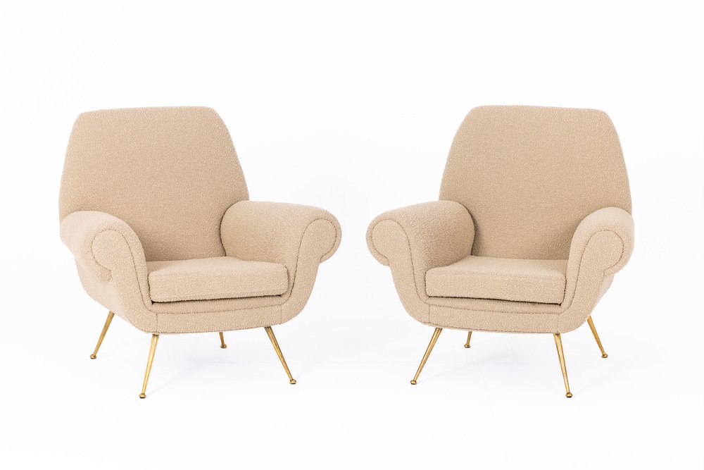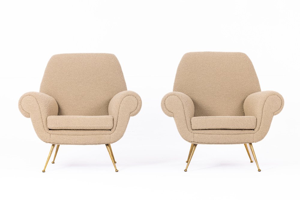 Set of Gigi Radice Armchairs in Boucle by Bisson Bruneel for Minotti, Italy, 1950s